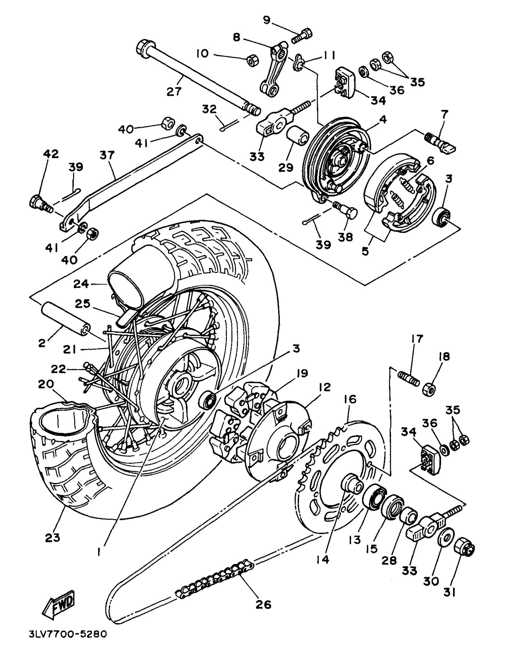 Yamaha XV250KC (VIRAGO 250 CA) 1998 REAR WHEEL Diagram