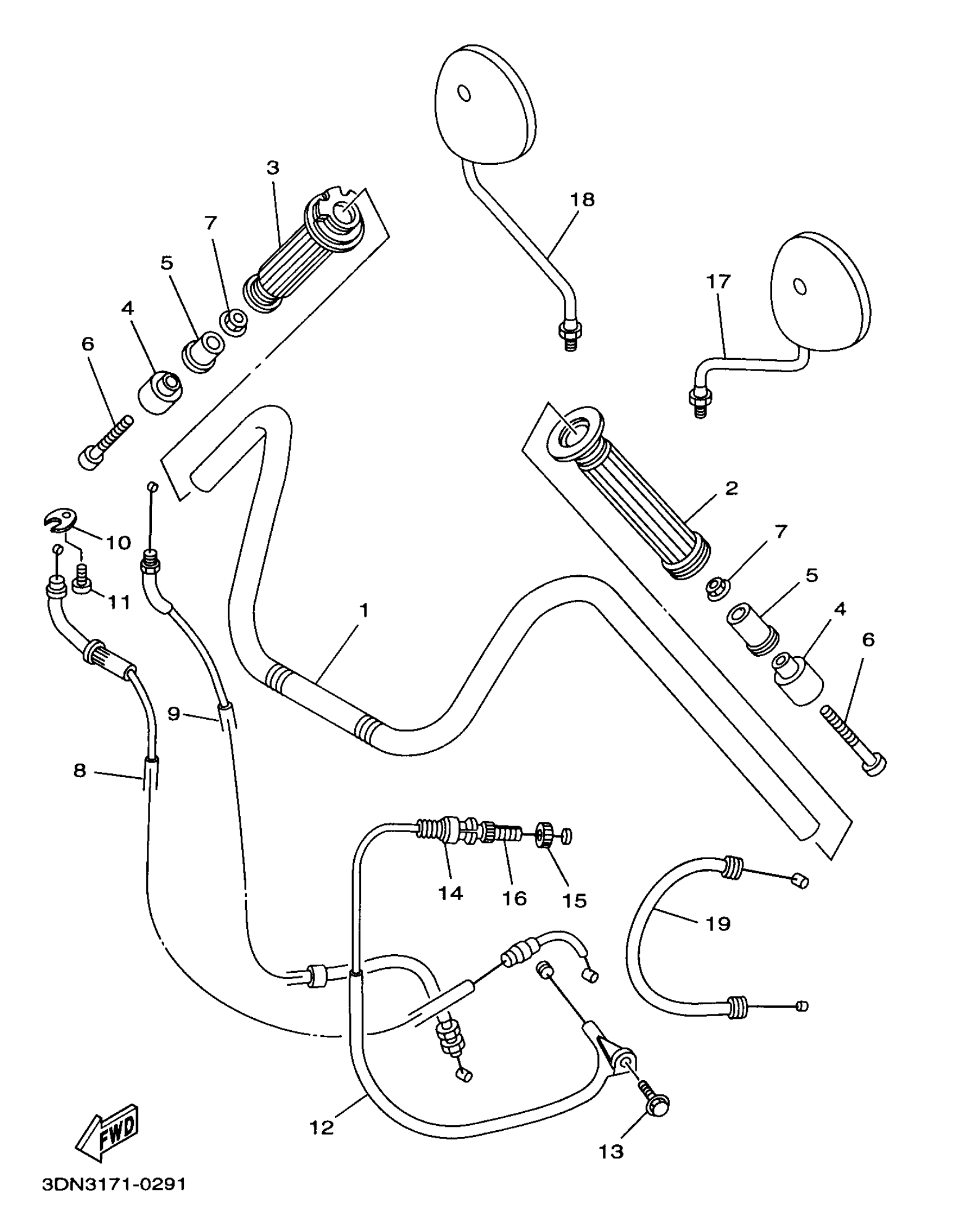 Yamaha XV250LC (VIRAGO 250 CA) 3BG8 1999 STEERING HANDLE CABLE Diagram
