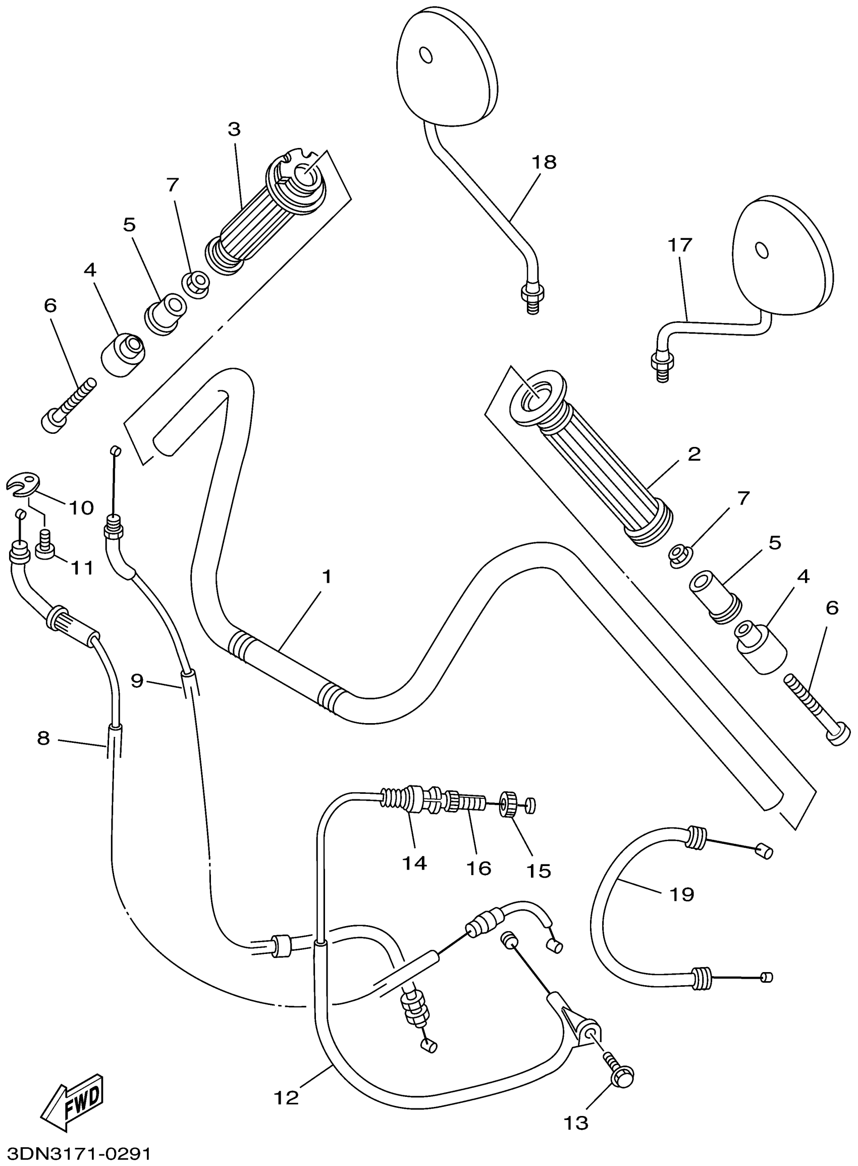 Yamaha XV250PC (VIRAGO 250 CA) 3BGB 2002 STEERING HANDLE CABLE Diagram