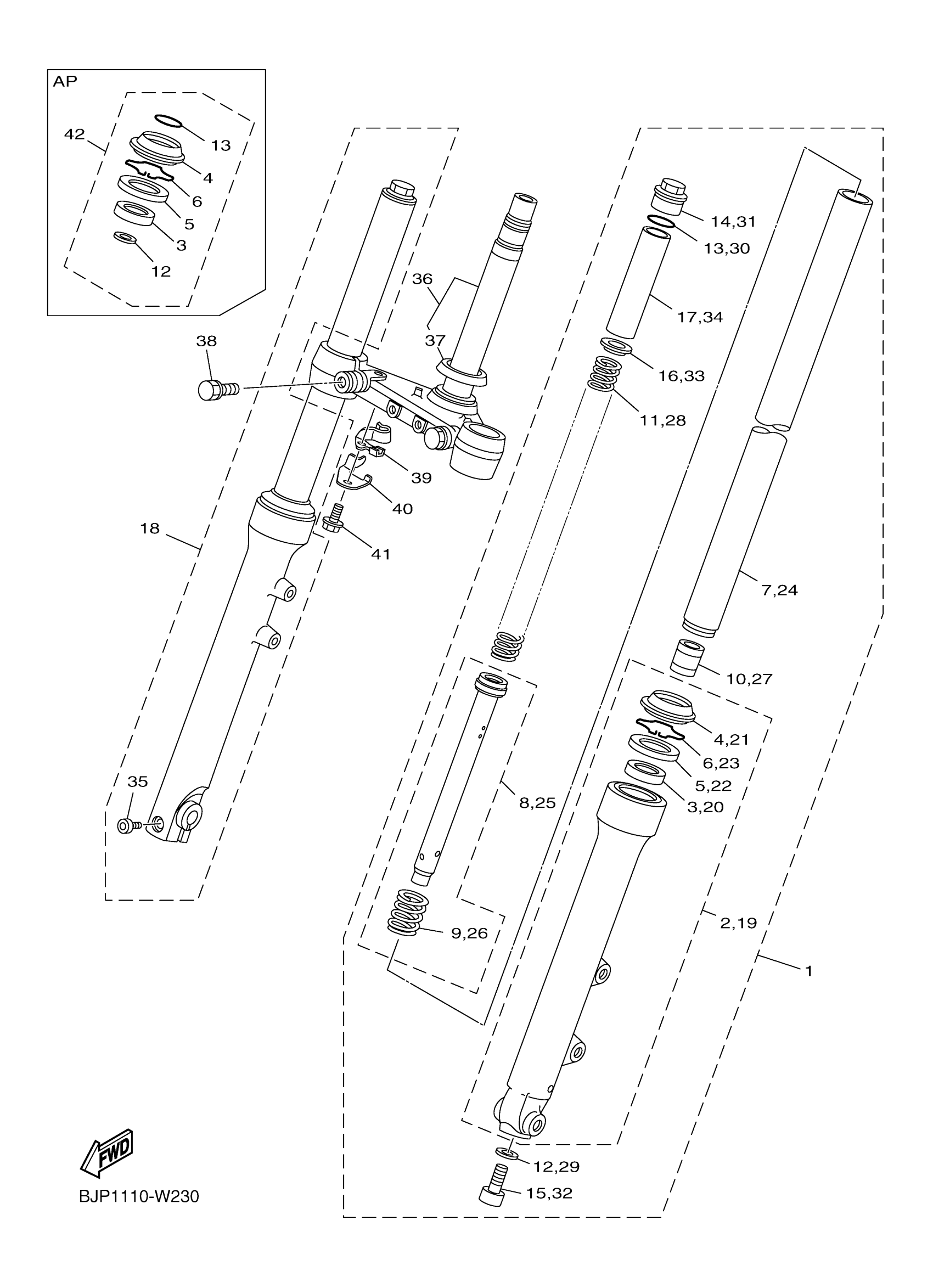 Yamaha XV250S1CB (VSTAR 250 CA) BJPE 2025 FRONT FORK Diagram
