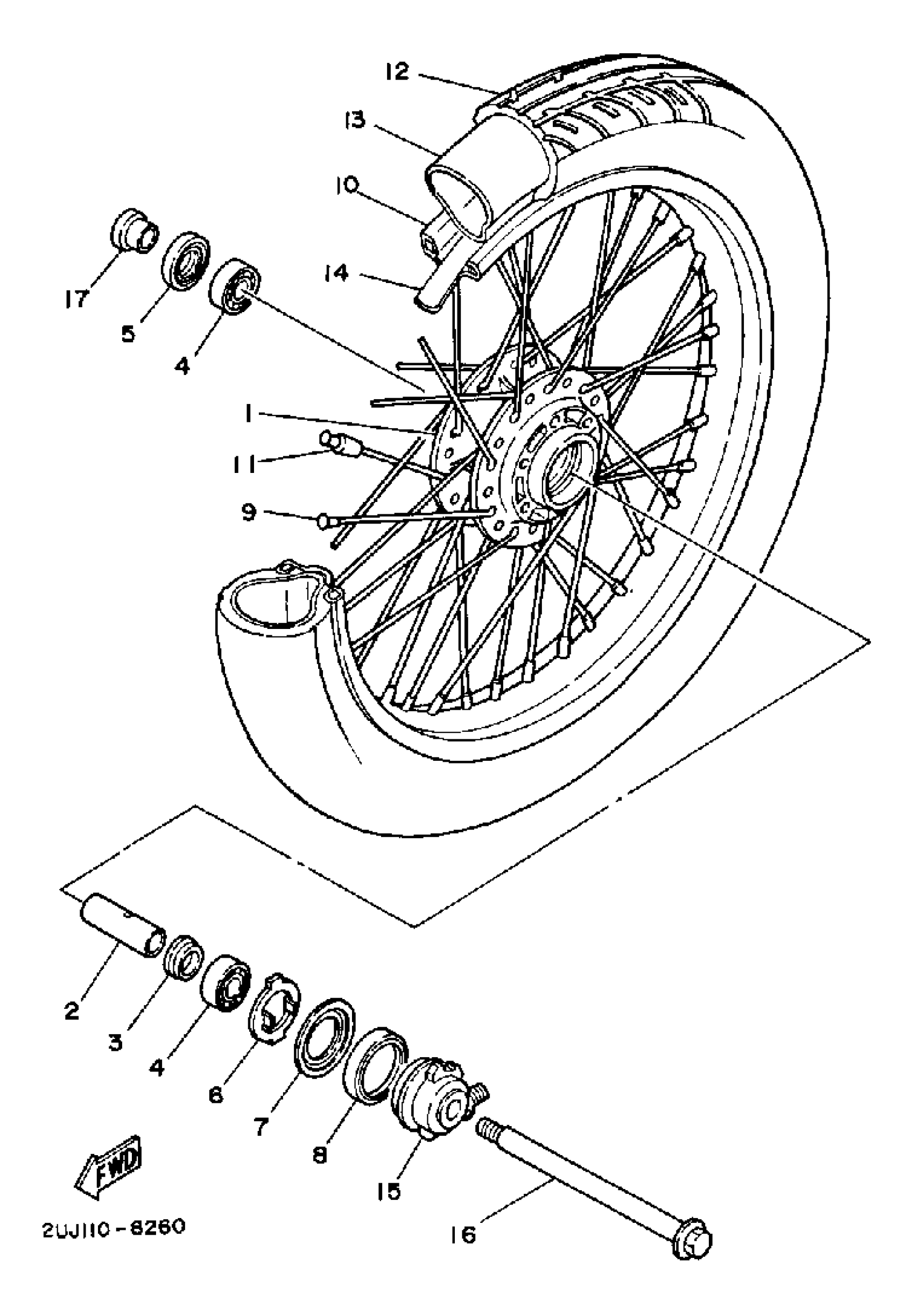 Yamaha XV250UC (ROUTE 66 CA) 1988 FRONT WHEEL Diagram
