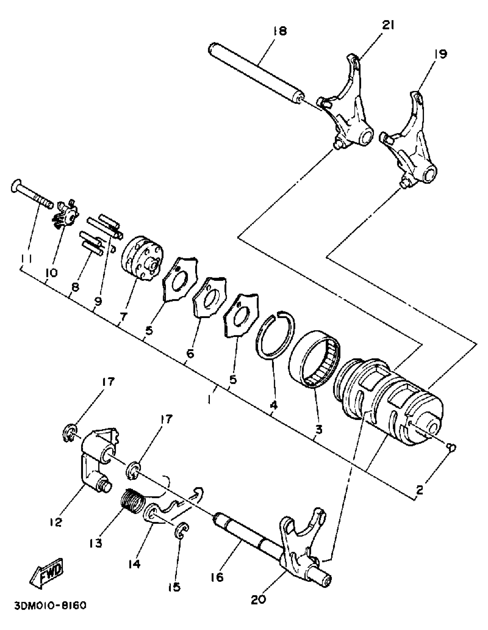 Yamaha XV250UC (ROUTE 66 CA) 1988 SHIFT CAM FORK Diagram