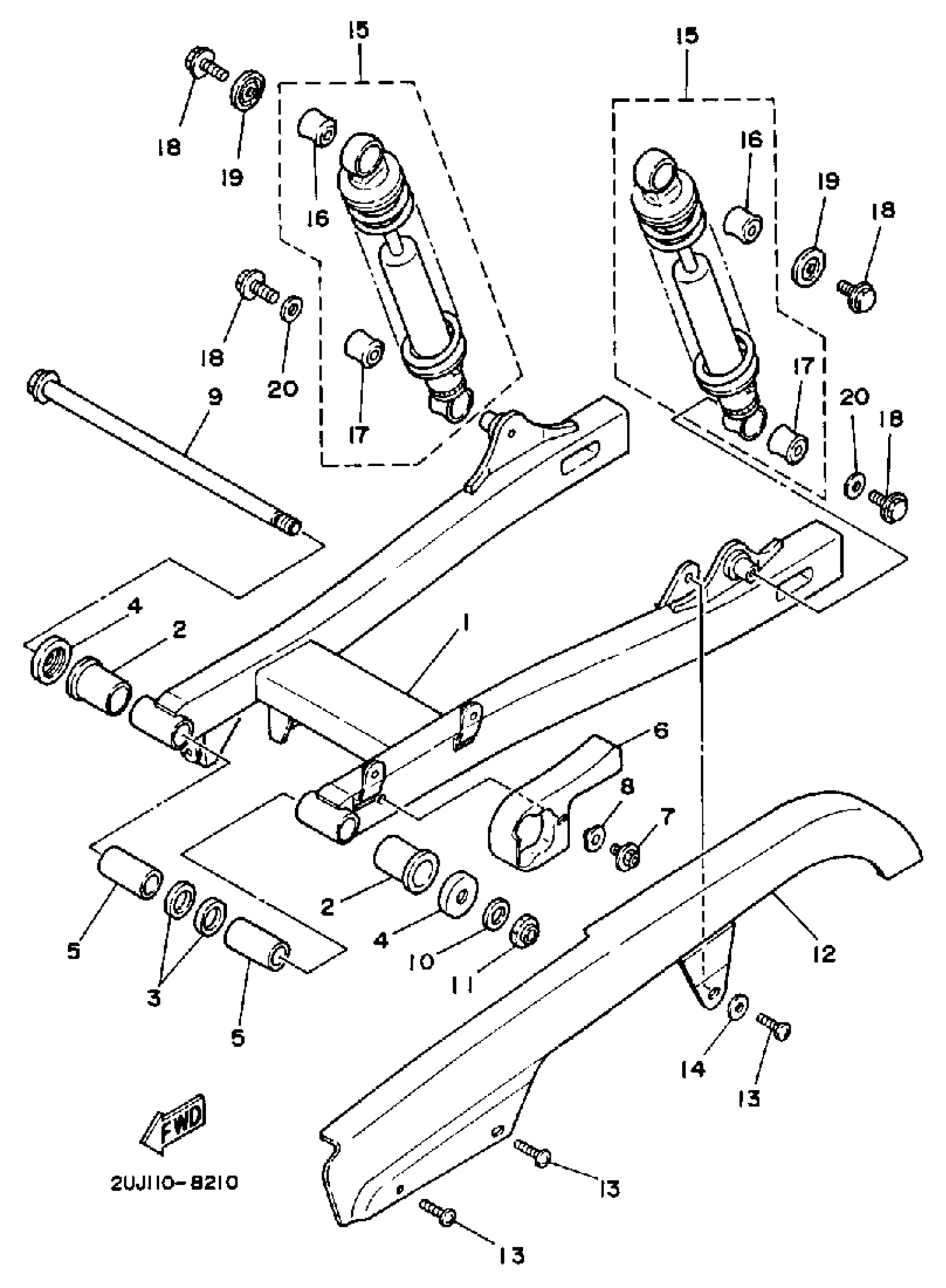 Yamaha XV250UC (ROUTE 66 CA) 1988 SWING ARM REAR SHOCKS Diagram