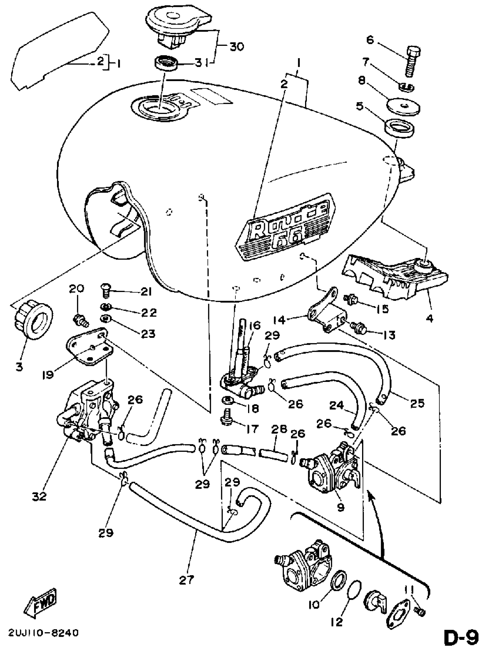 Yamaha XV250WC (ROUTE 66 CA) 1989 FUEL TANK NON CALIFORNIA MODEL Diagram