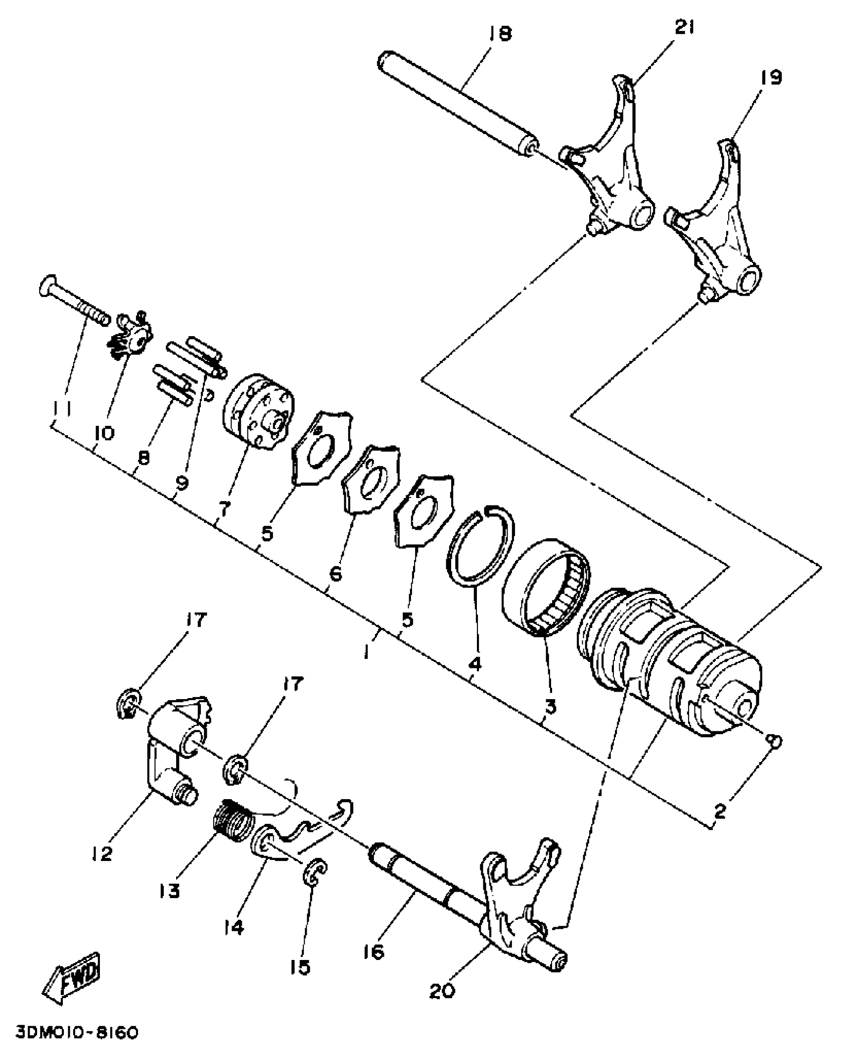 Yamaha XV250WC (ROUTE 66 CA) 1989 SHIFT CAM FORK Diagram
