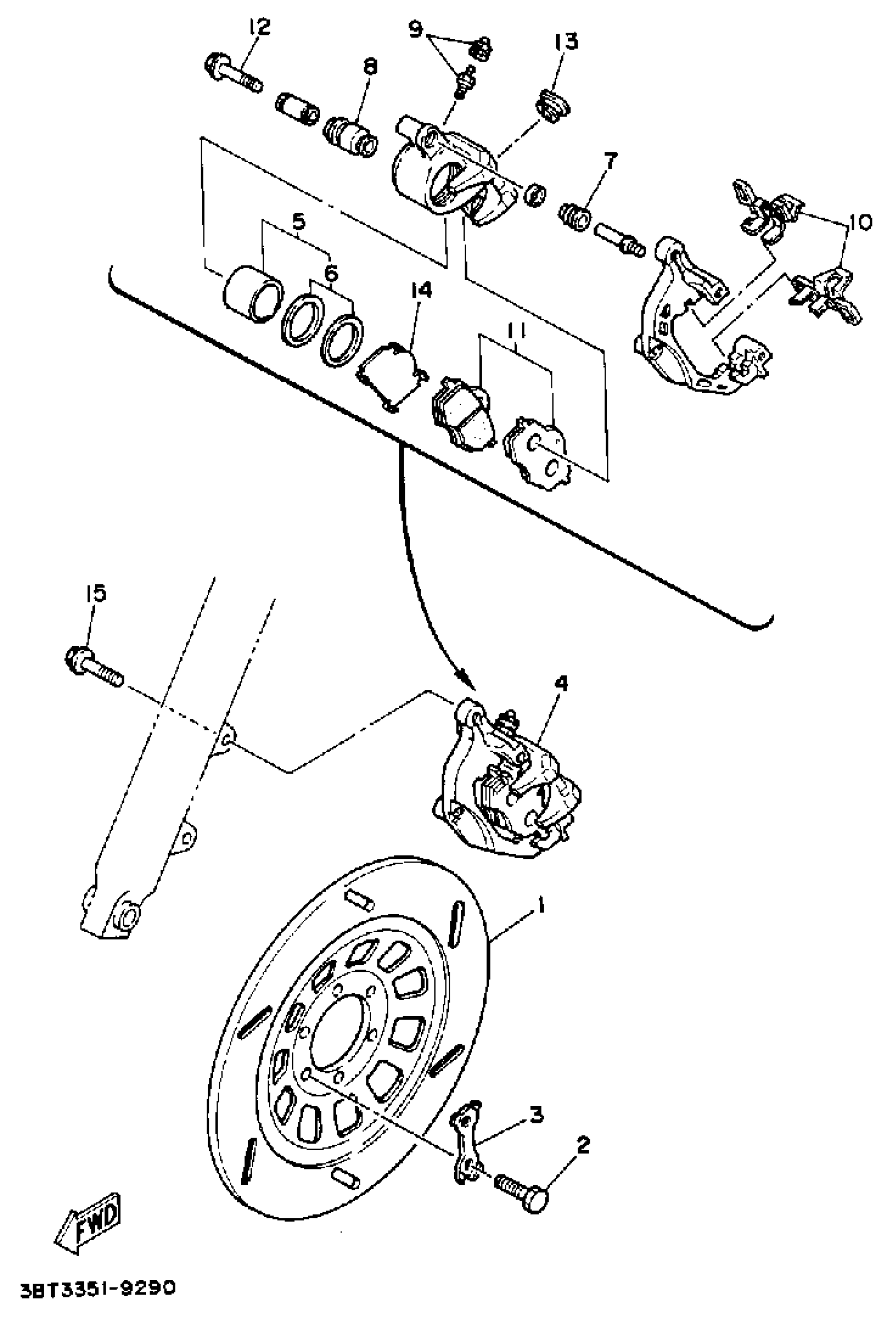 Yamaha XV535AC (VIRAGO 535 CA) 1990 FRONT BRAKE CALIPER Diagram