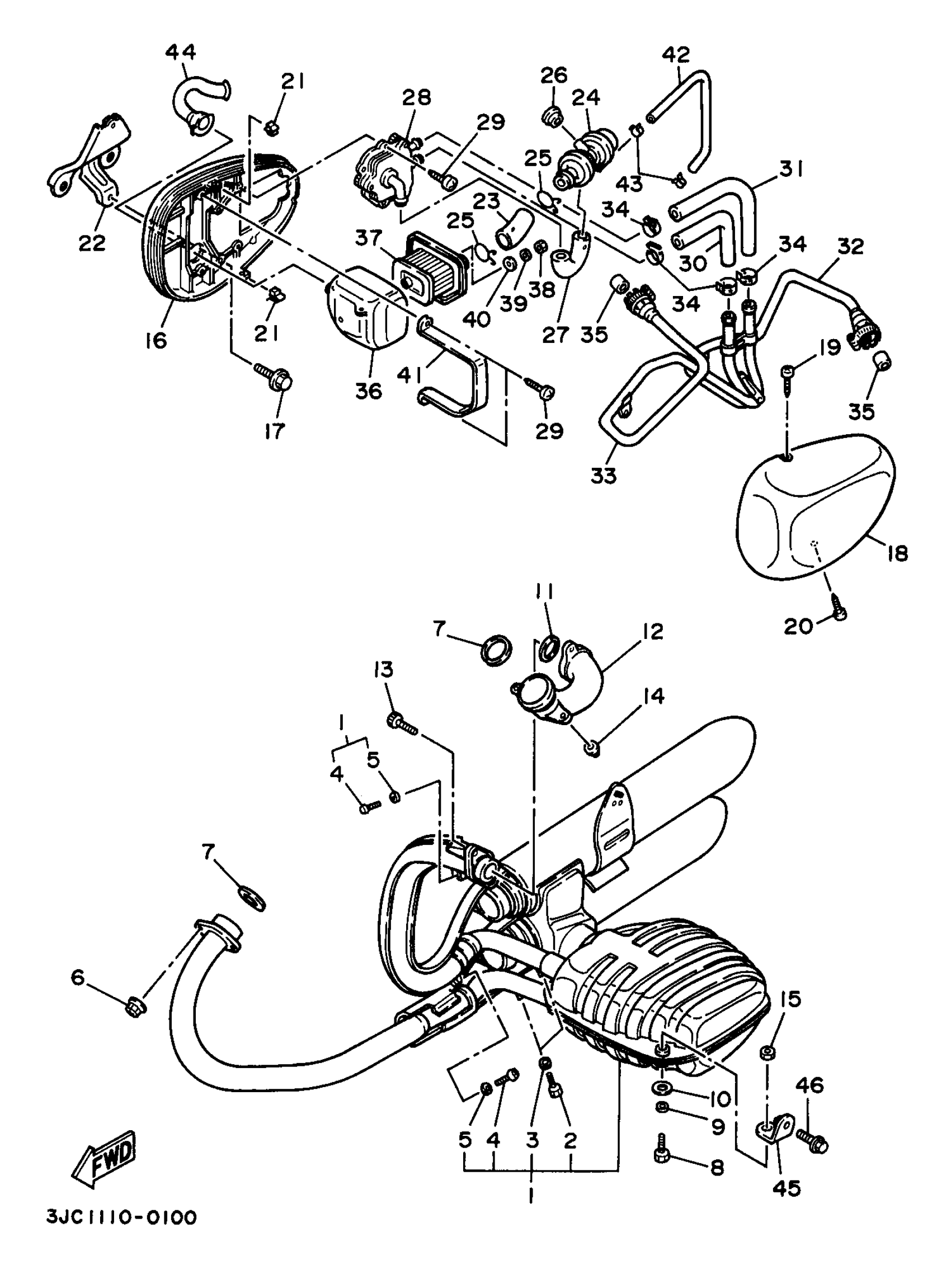 Yamaha XV535KC (VIRAGO 535 CA) 1998 EXHAUST Diagram