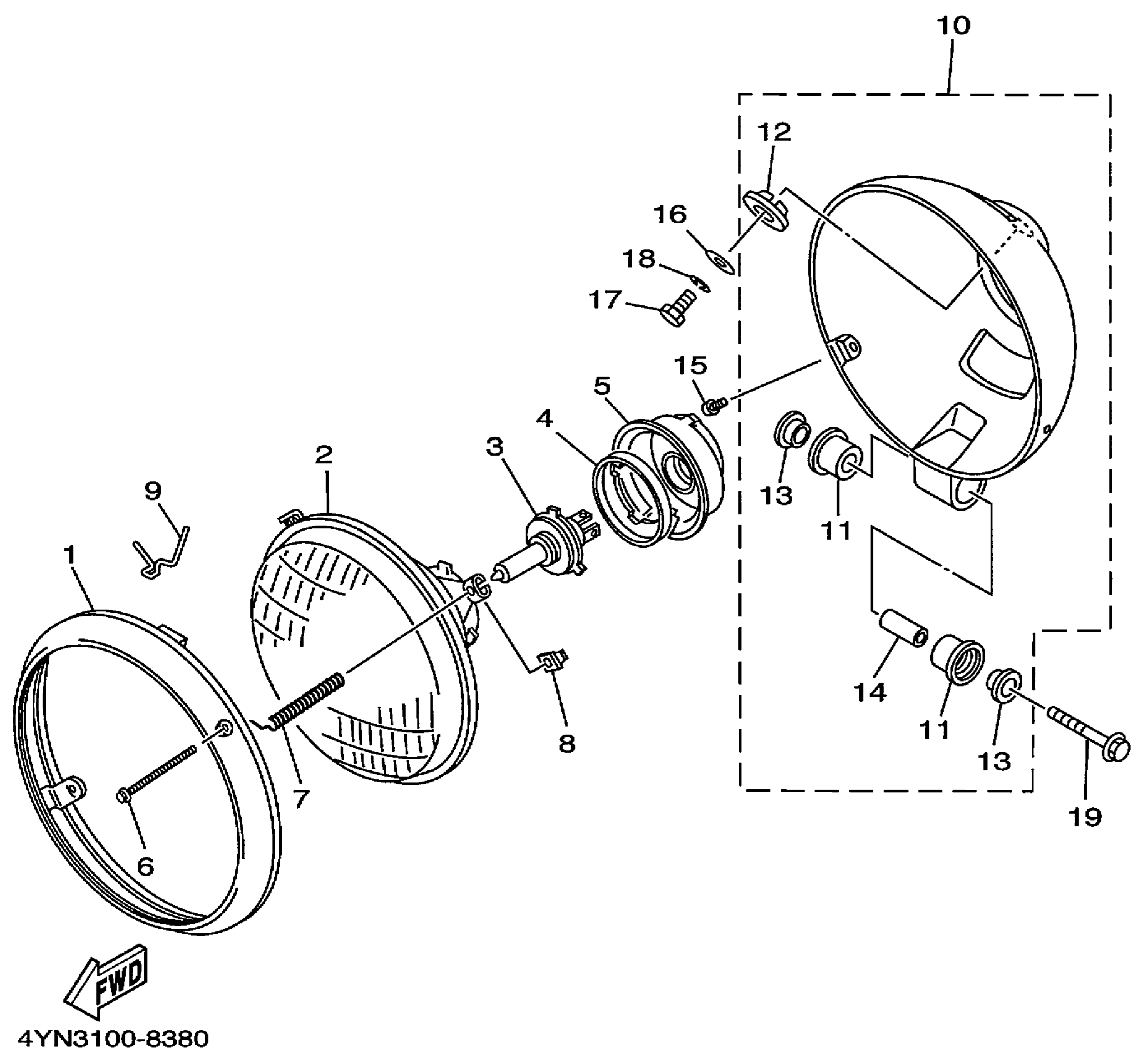 Yamaha XV535LC (VIRAGO 535 CA) 4YNA 1999 HEADLIGHT Diagram