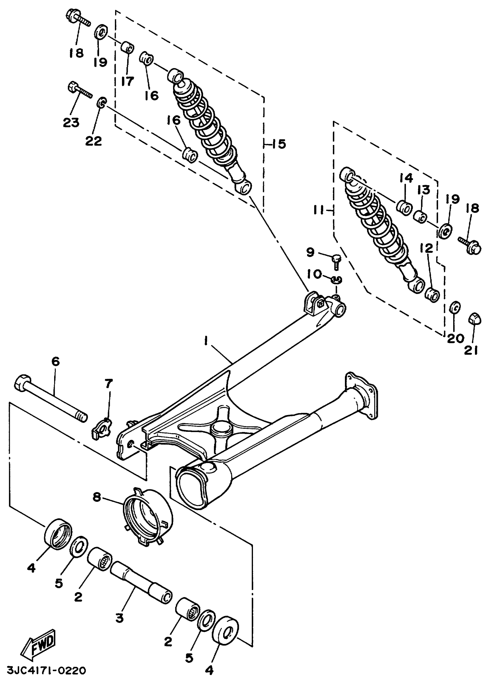 Yamaha XV535LC (VIRAGO 535 CA) 4YNA 1999 REAR ARM SUSPENSION Diagram