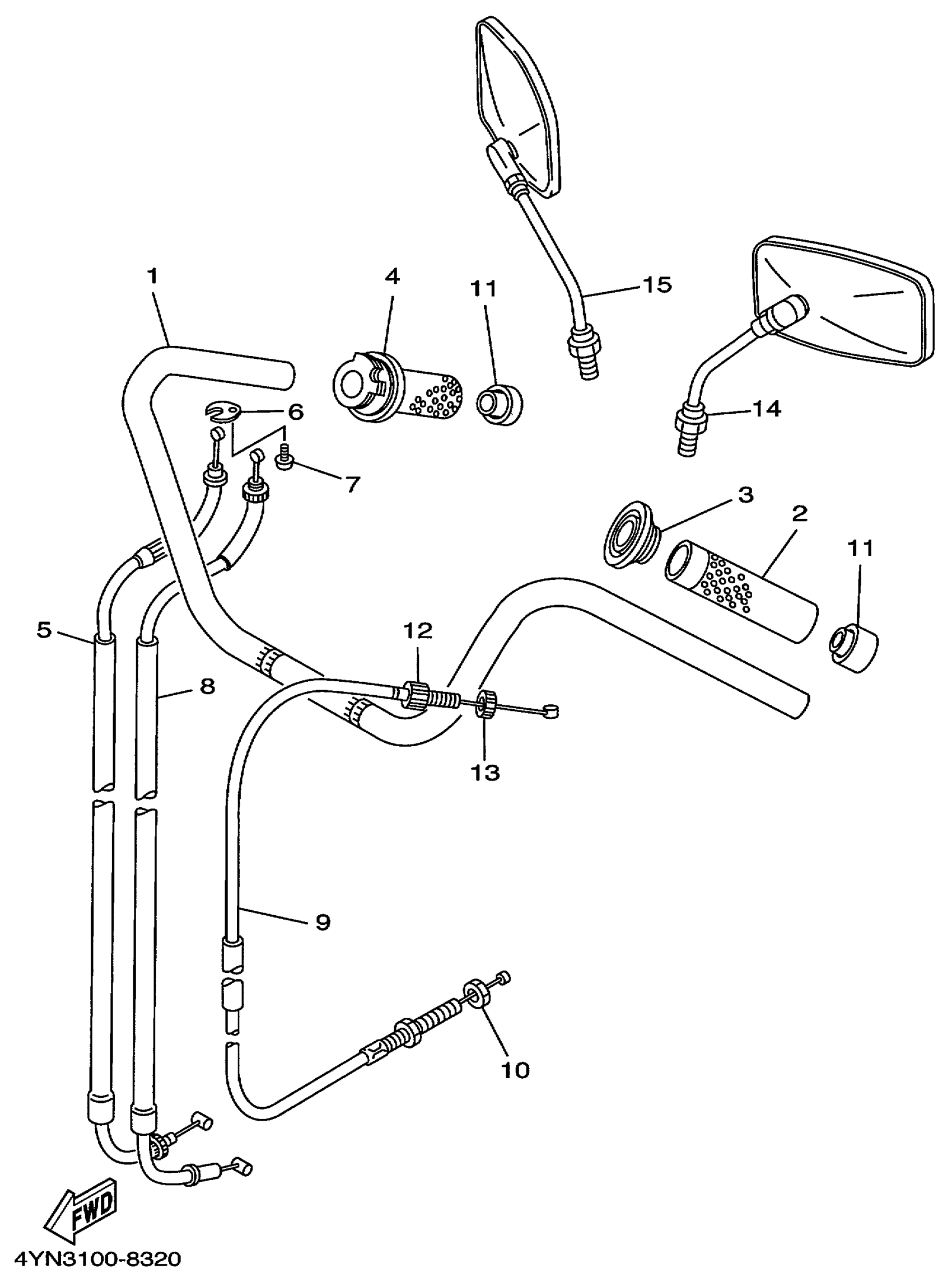Yamaha XV535LC (VIRAGO 535 CA) 4YNA 1999 STEERING HANDLE CABLE Diagram