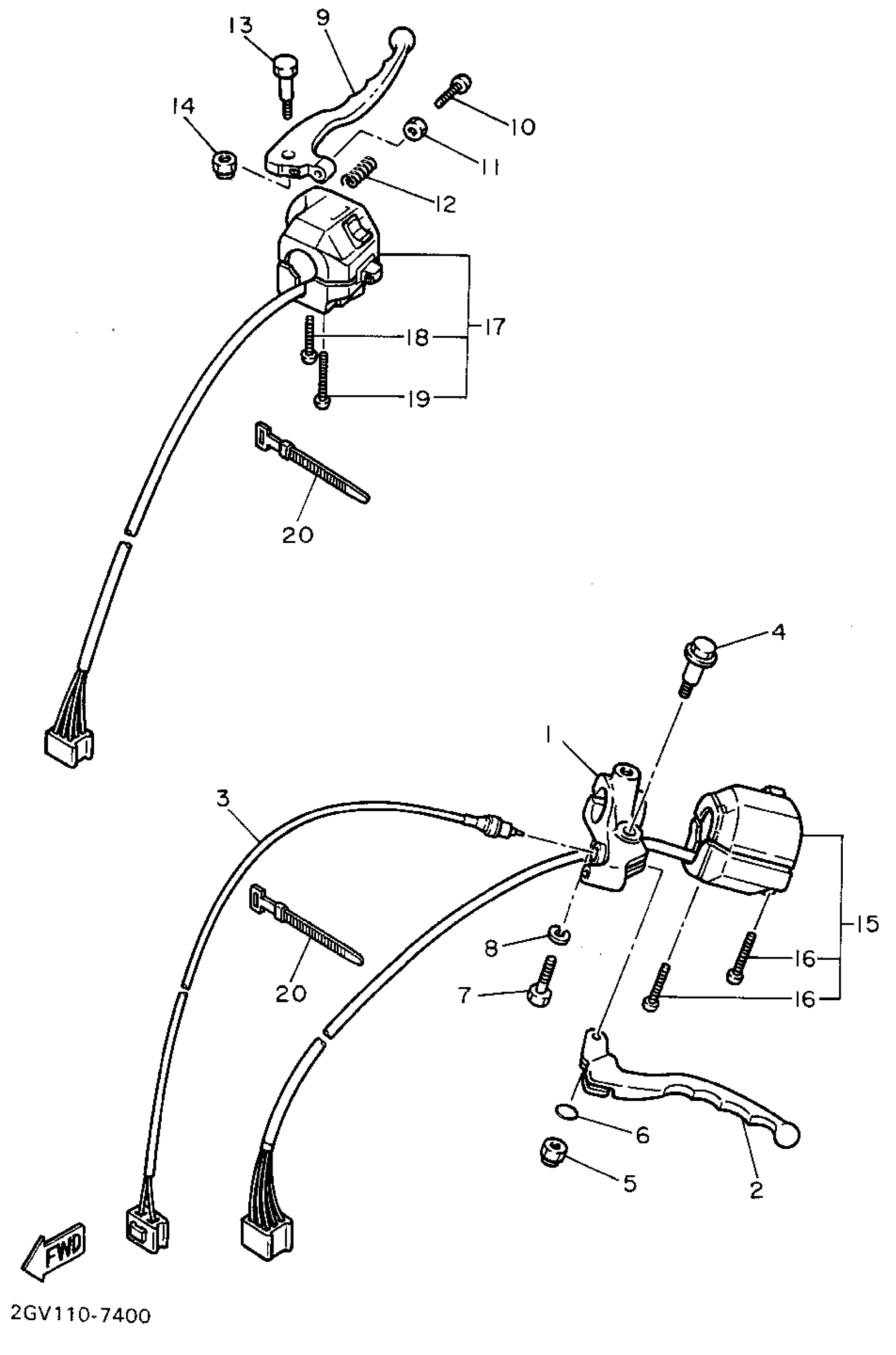 Yamaha XV535SFC (VIRAGO 535 CA) 3JCE 1994 HANDLE SWITCH LEVER Diagram