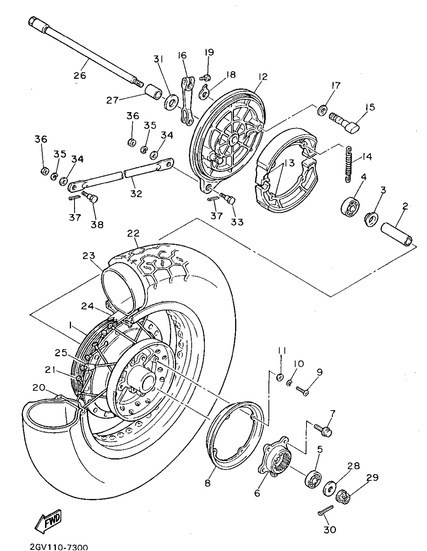 Yamaha XV535SGC (VIRAGO 535 CA) 3JCL 1995 REAR WHEEL Diagram