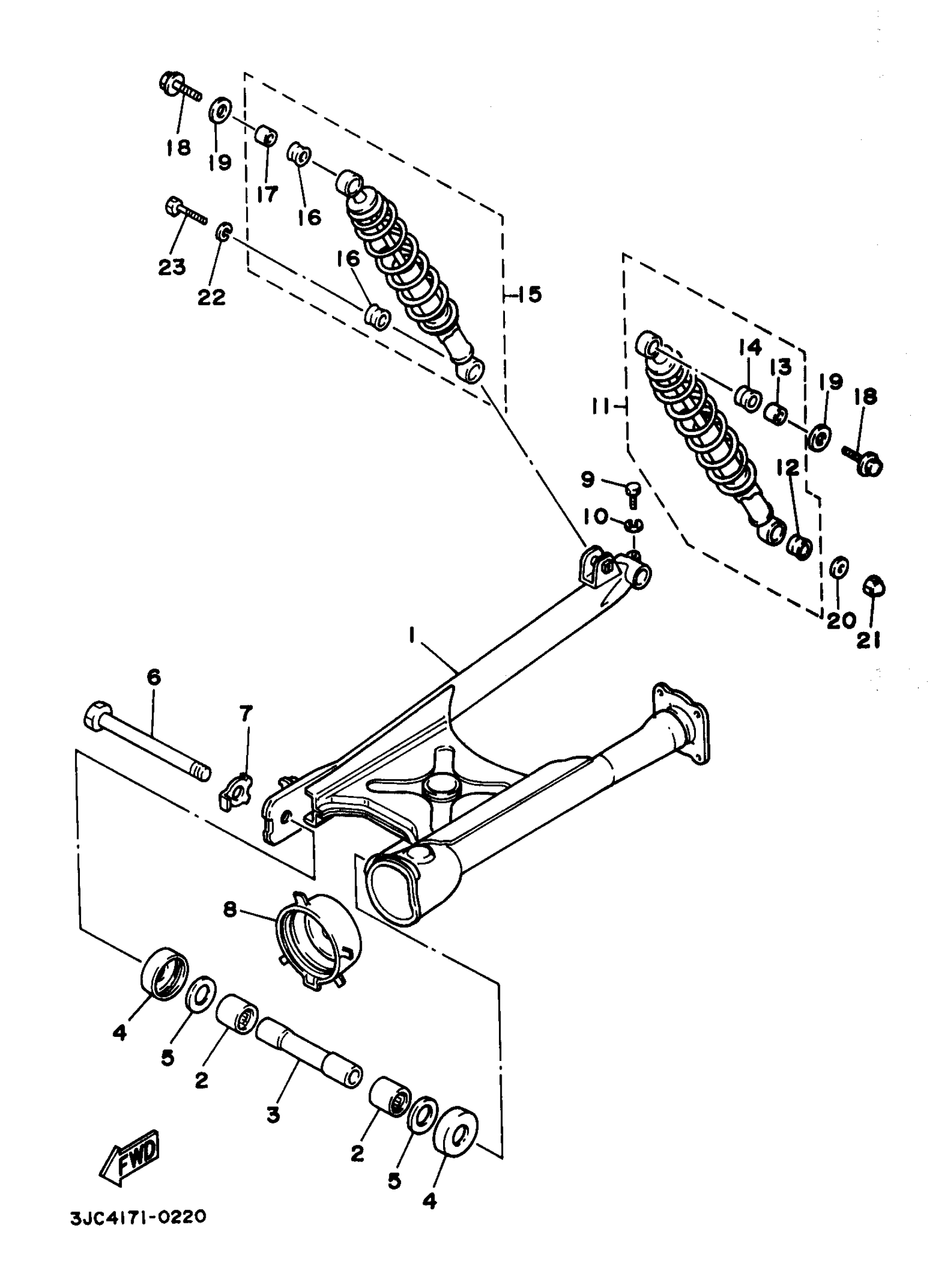 Yamaha XV535SJC (VIRAGO 535 CA) 1997 REAR ARM SUSPENSION Diagram