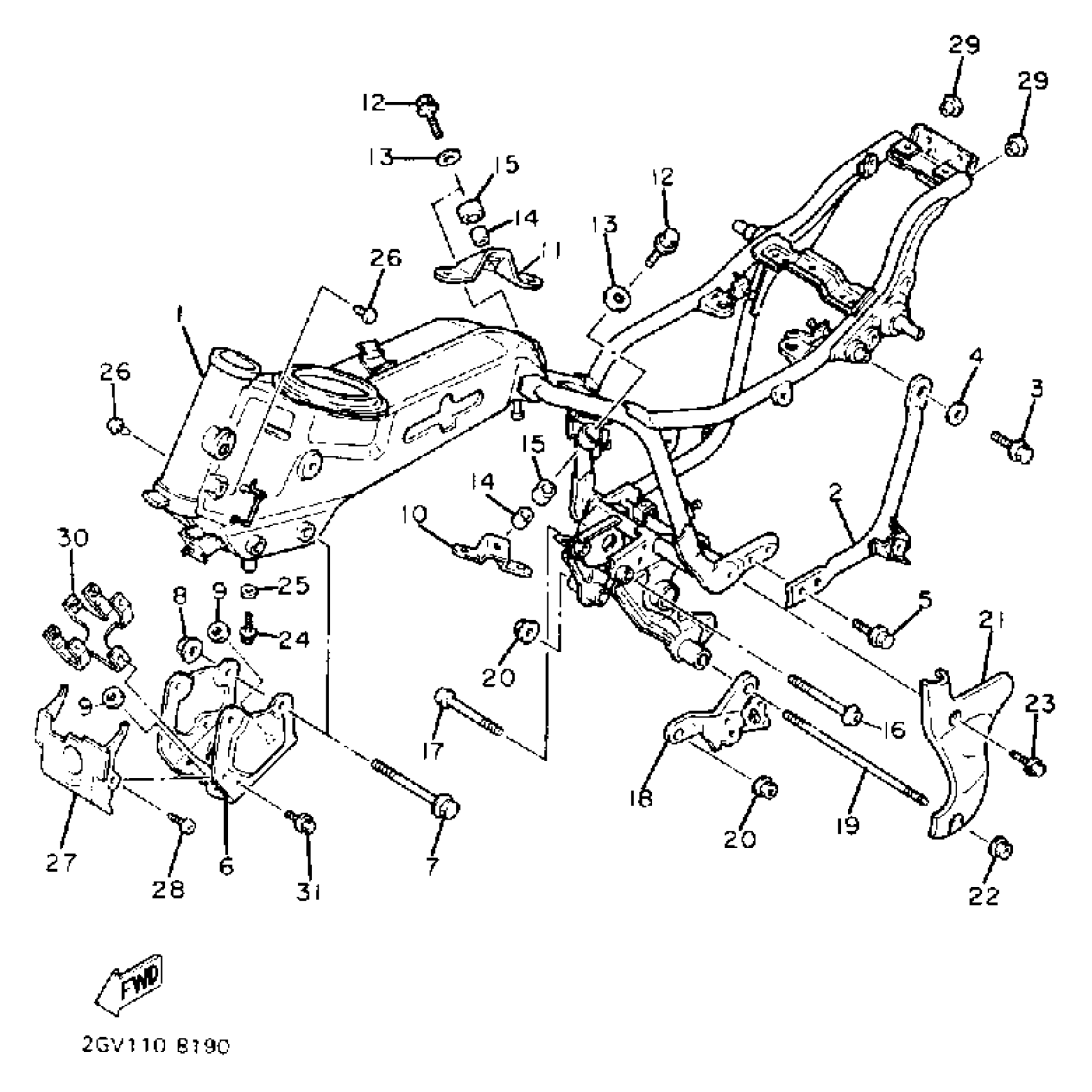 Yamaha XV535U (VIRAGO 535) 1988 FRAME Diagram
