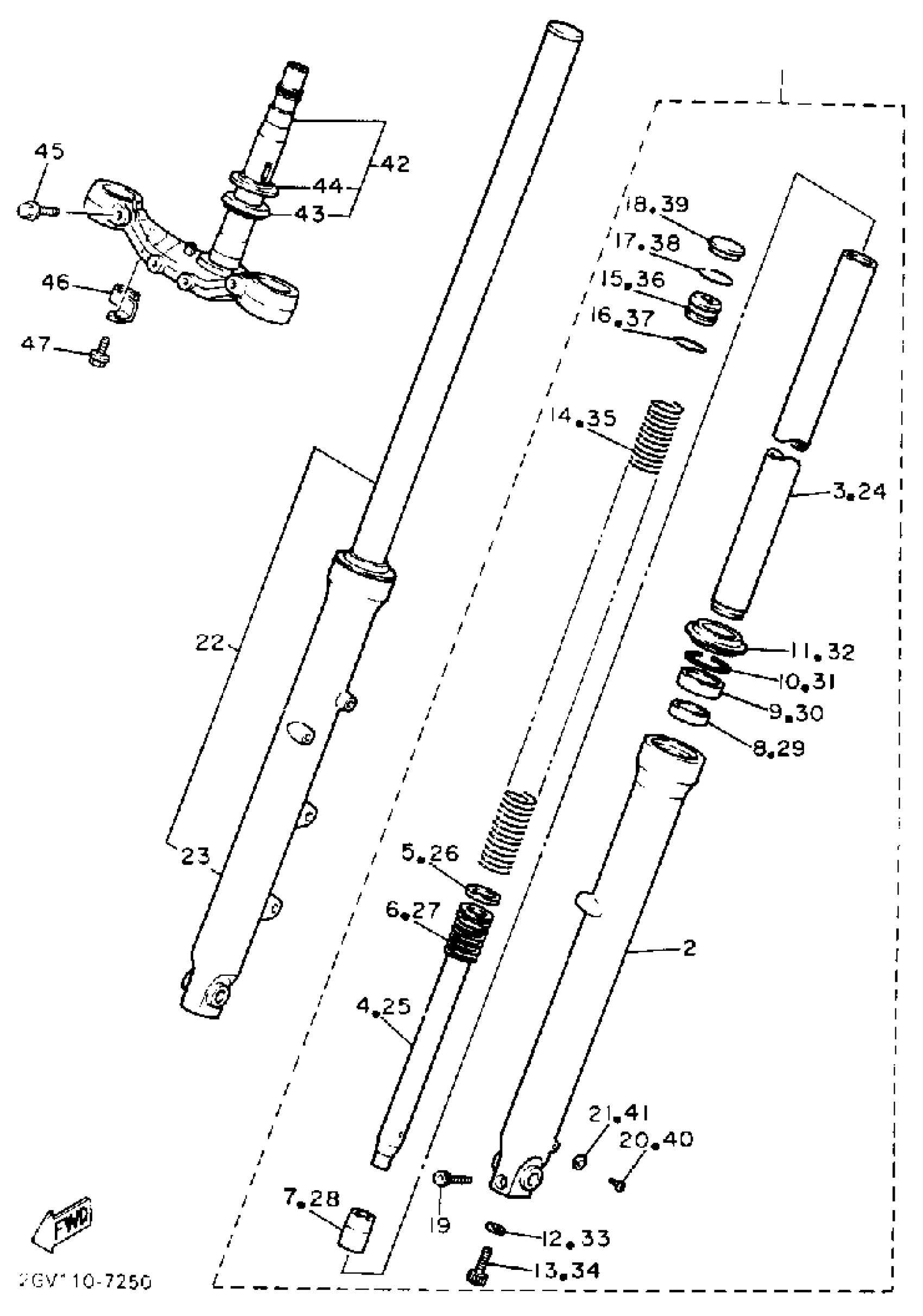 Yamaha XV535U (VIRAGO 535) 1988 FRONT FORK Diagram