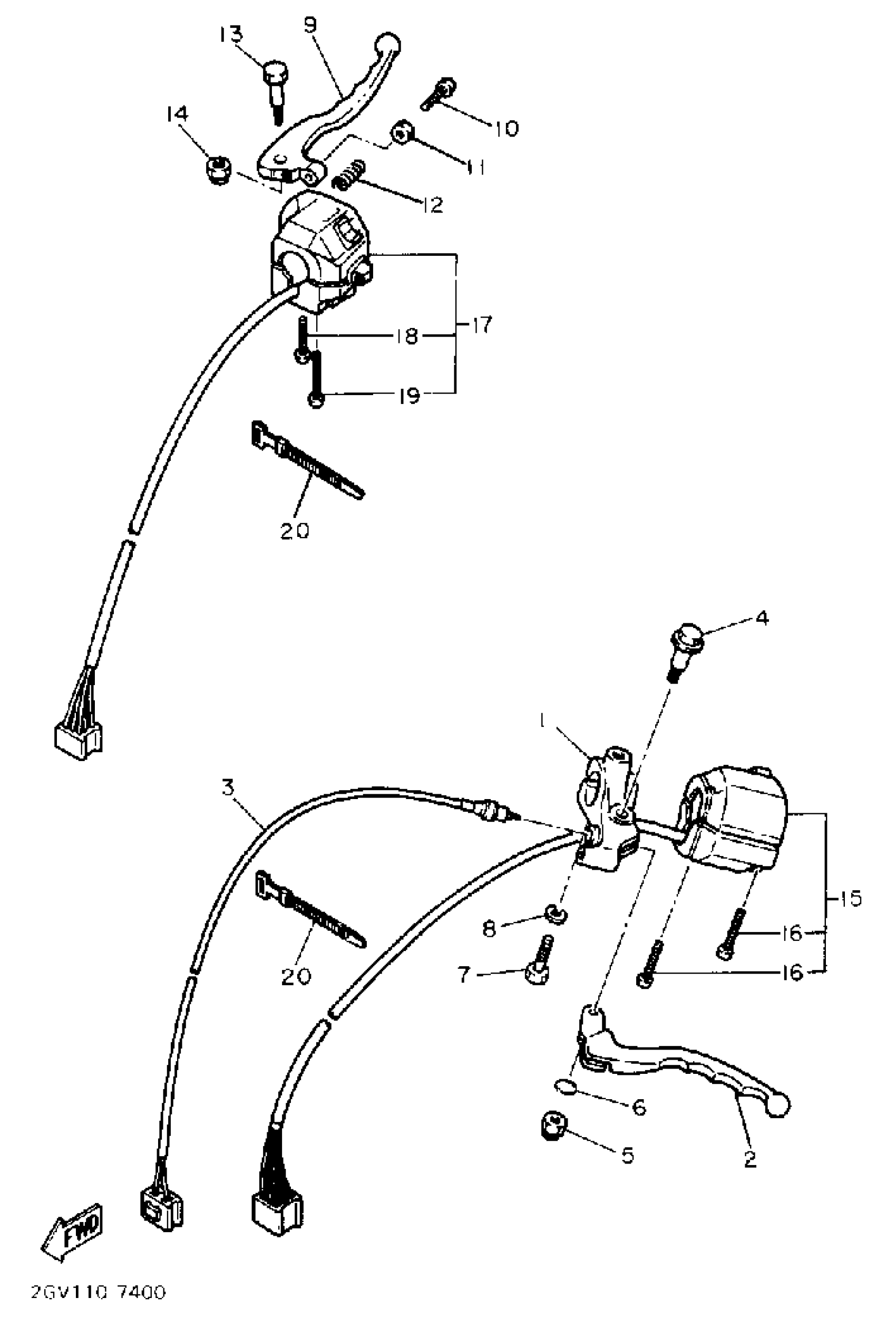 Yamaha XV535U (VIRAGO 535) 1988 HANDLE SWITCH LEVER Diagram
