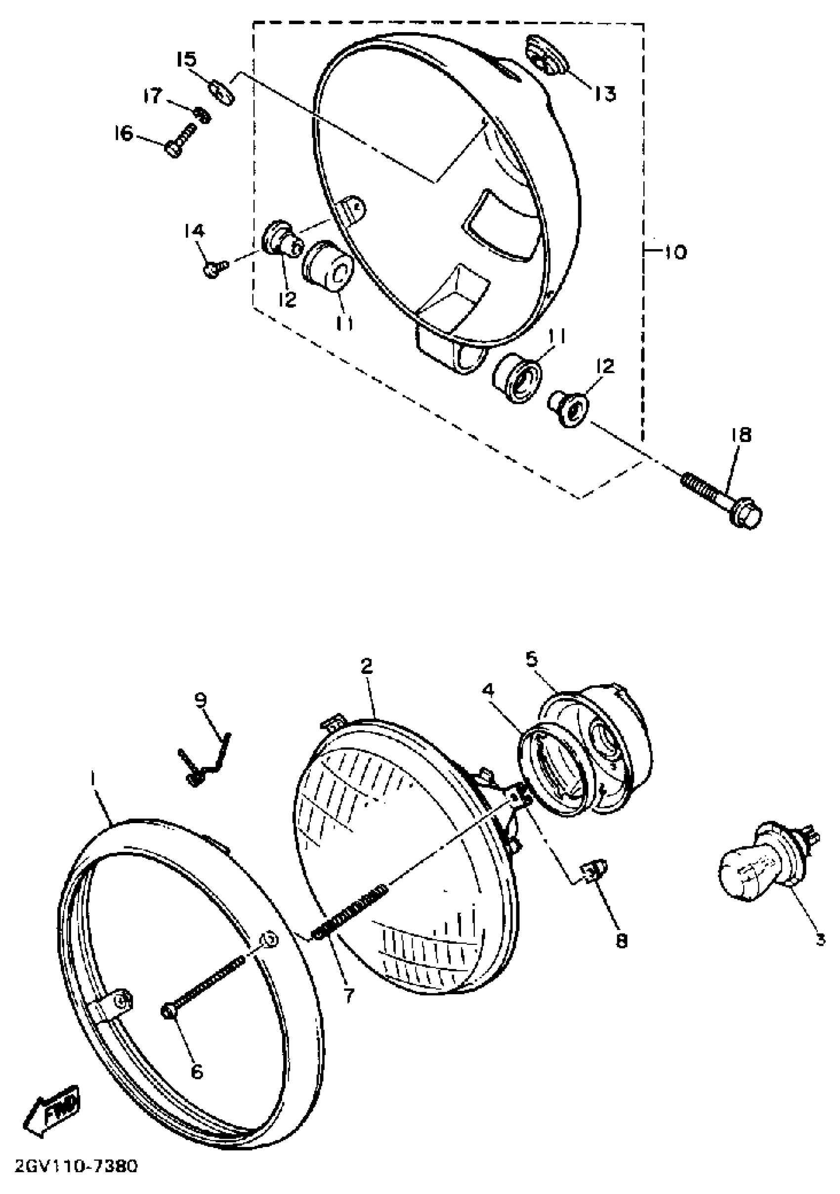 Yamaha XV535U (VIRAGO 535) 1988 HEADLIGHT Diagram
