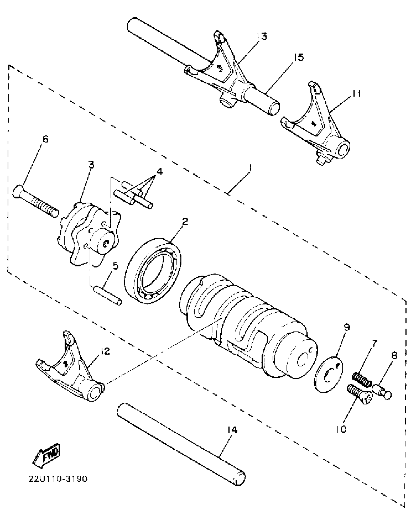 Yamaha XV535U (VIRAGO 535) 1988 SHIFT CAM FORK Diagram