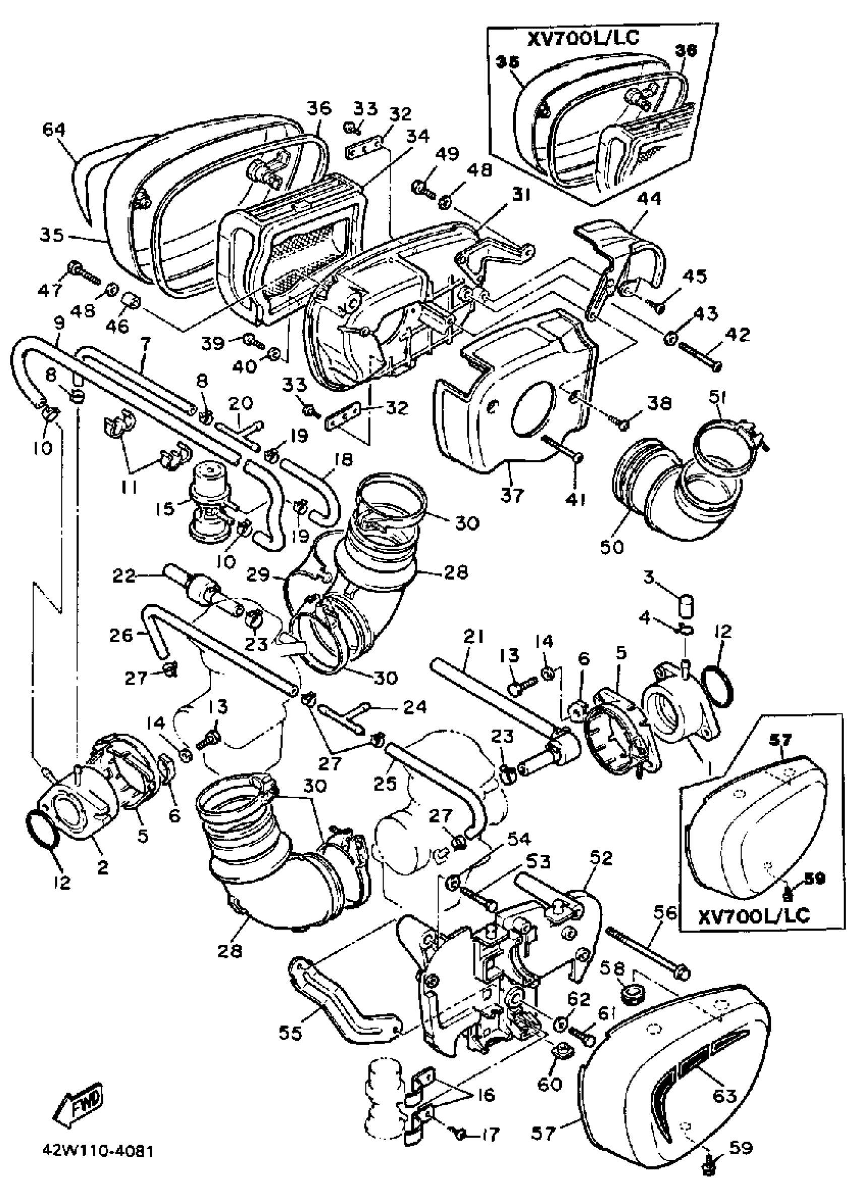 Yamaha XV700LC (VIRAGO 700 CA) 1984 AIR CLEANER Diagram