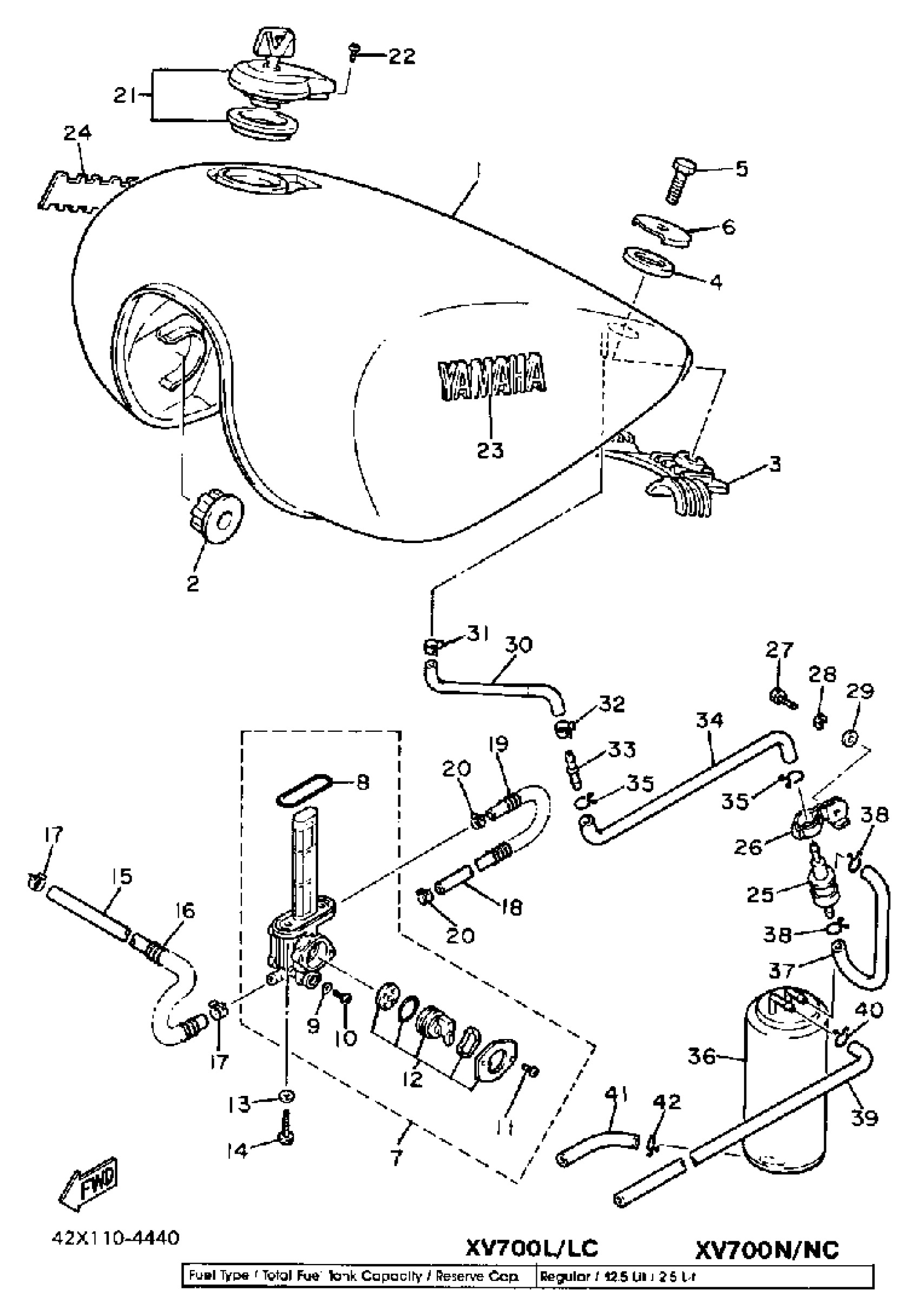 Yamaha XV700LC (VIRAGO 700 CA) 1984 FUEL TANK CA Diagram