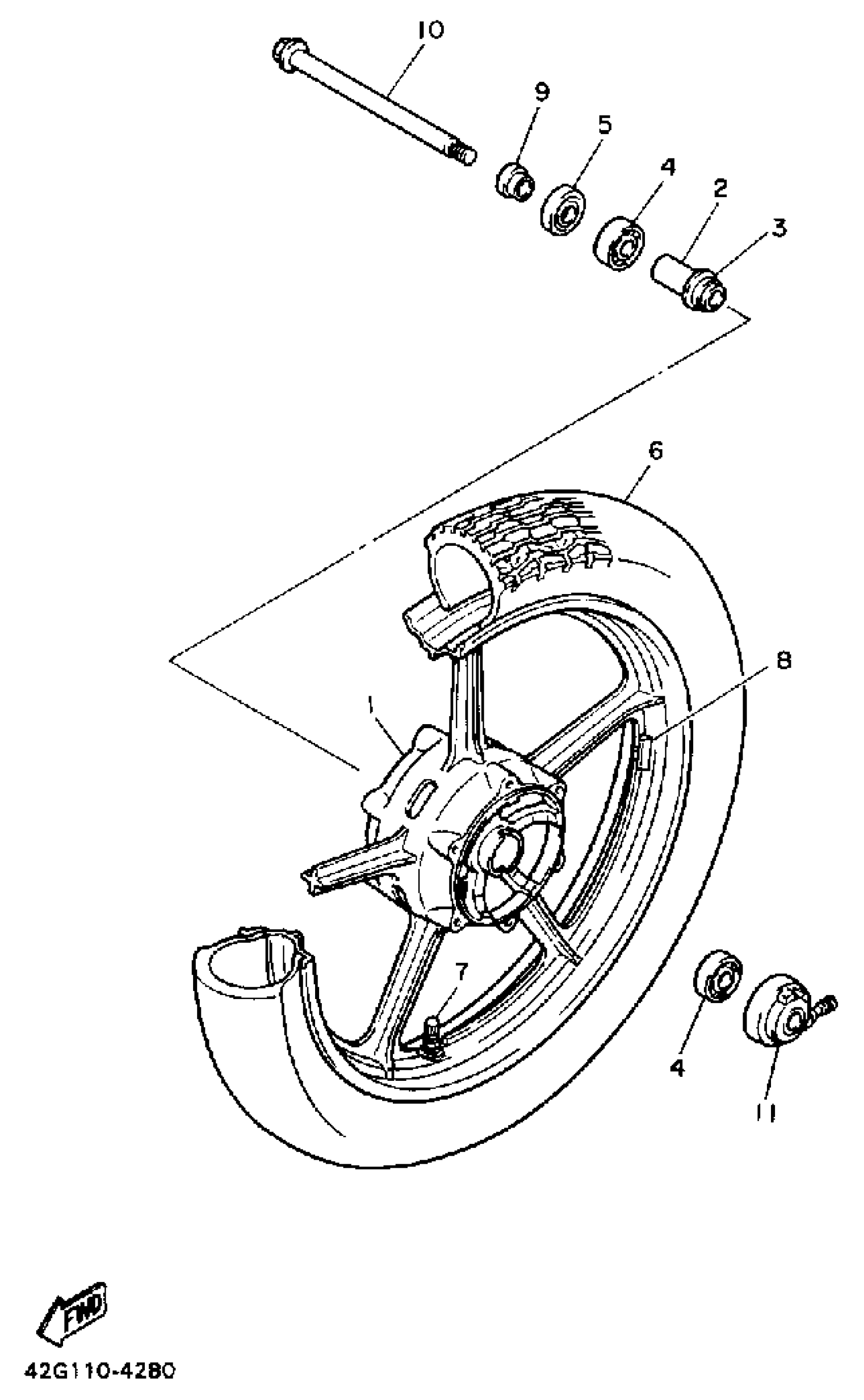 Yamaha XV750AC (VIRAGO 750 CA) 1990 FRONT WHEEL Diagram