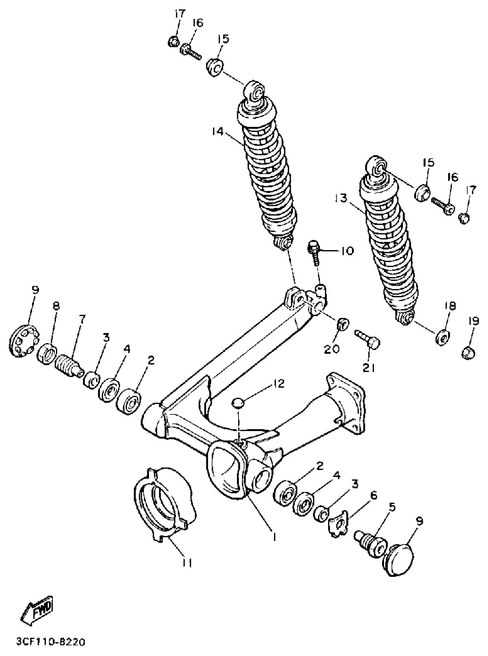 Yamaha XV750AC (VIRAGO 750 CA) 1990 SWING ARM REAR SHOCKS Diagram