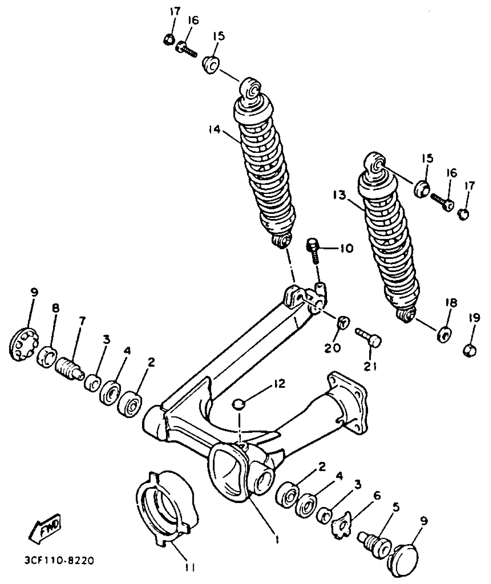 Yamaha XV750EC (VIRAGO 750 CA) 1993 SWING ARM REAR SHOCKS Diagram