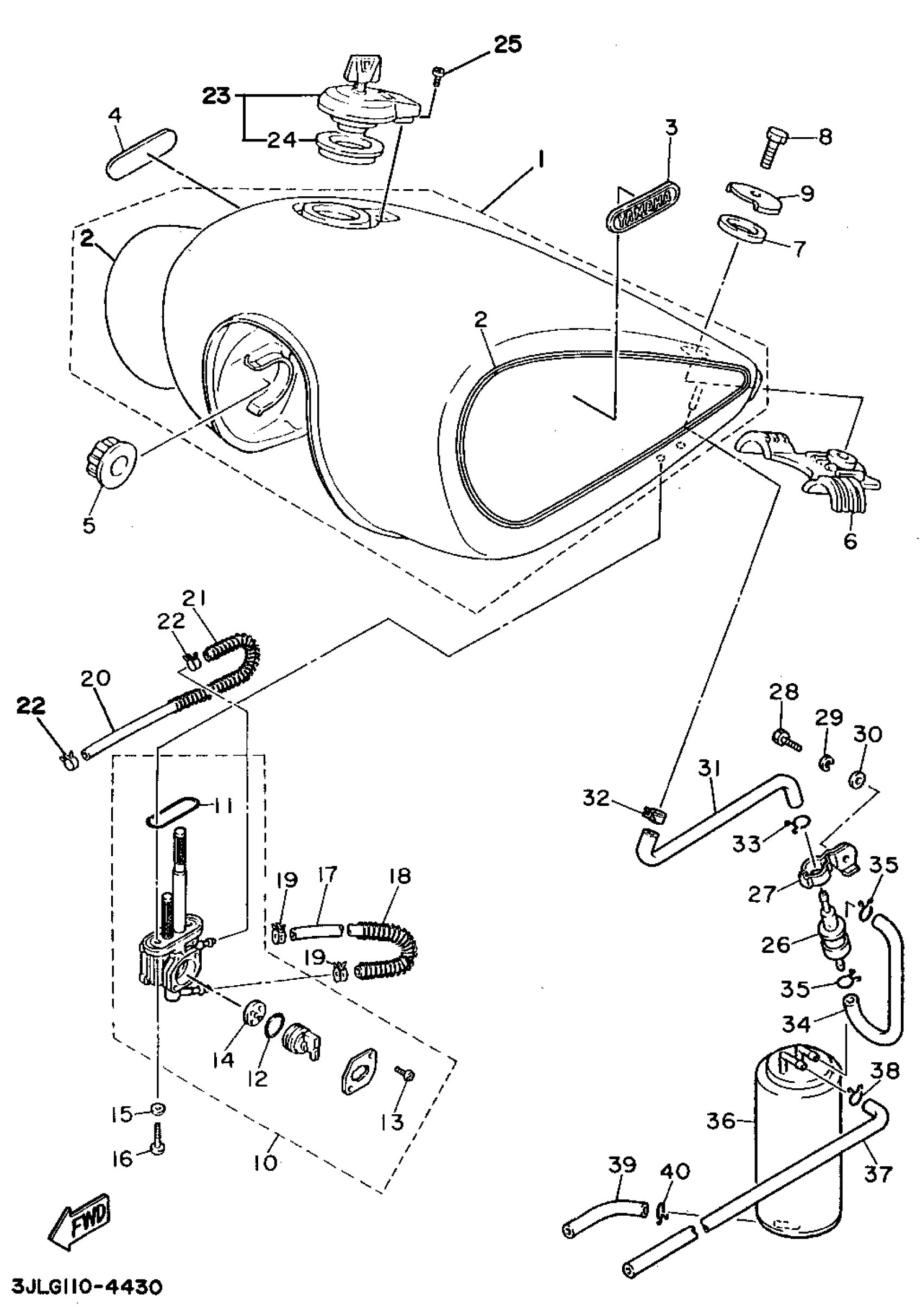 Yamaha XV750FC (VIRAGO 750 CA) 1994 FUEL TANK CALIFORNIA ONLY Diagram