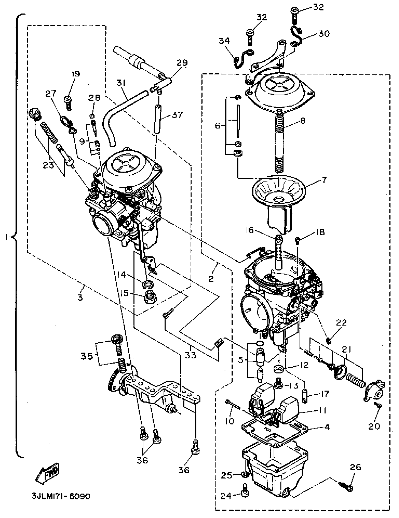 Yamaha XV750GC (VIRAGO 750 CA) 1995 CARBURETOR Diagram