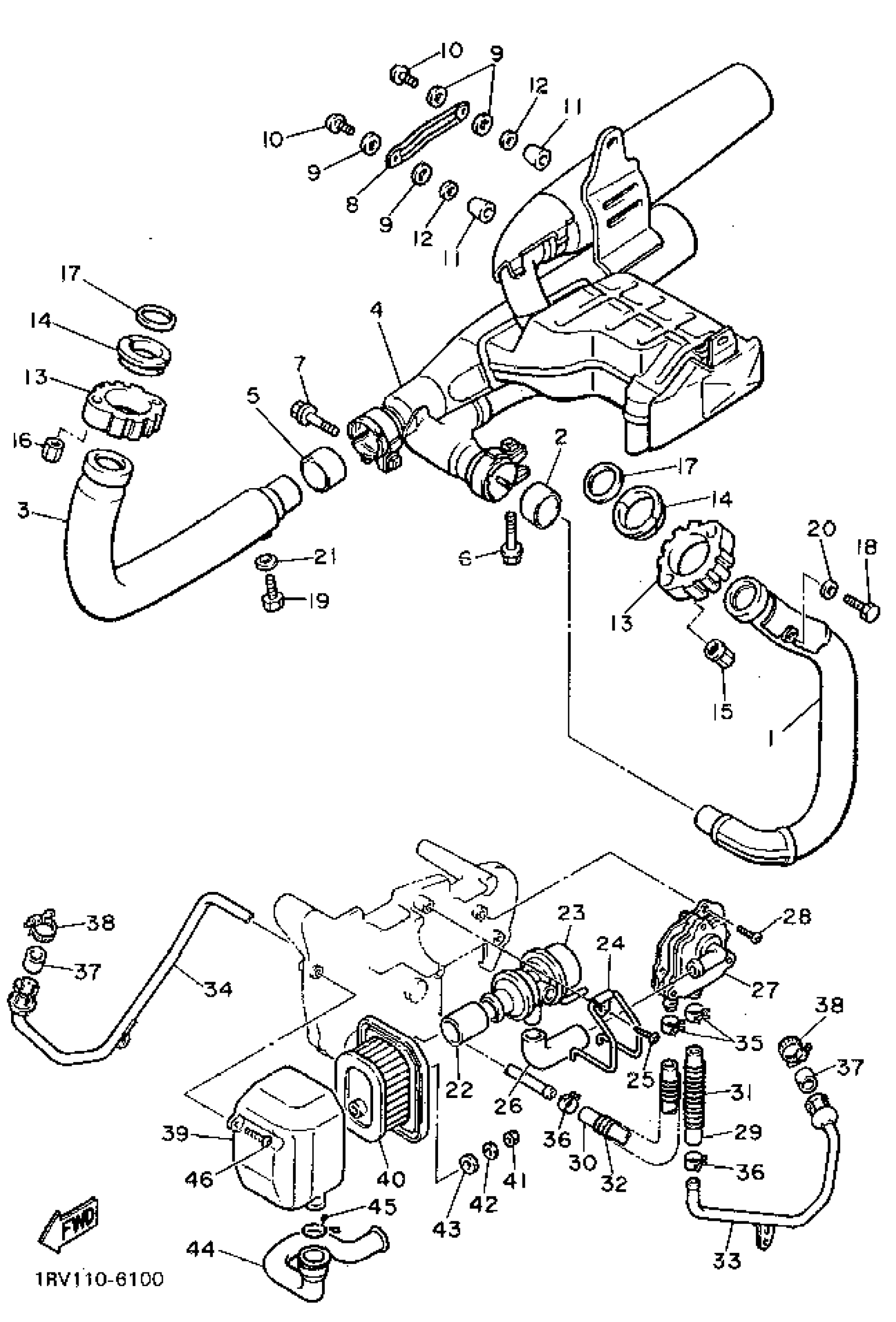 Yamaha XV750GC (VIRAGO 750 CA) 1995 EXHAUST Diagram