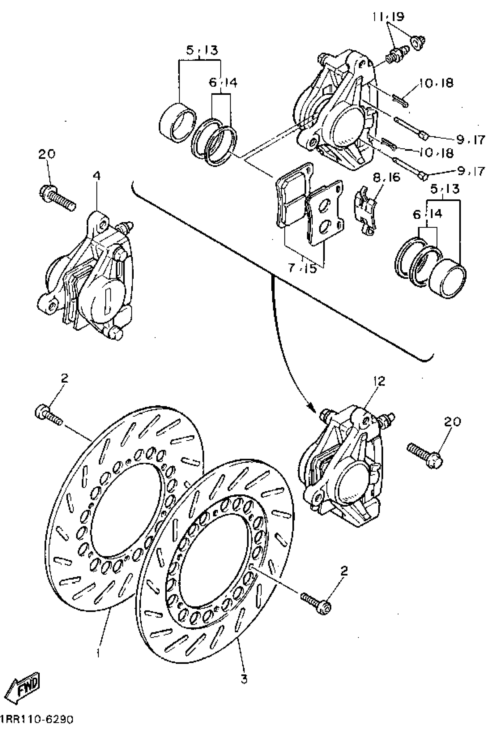 Yamaha XV750GC (VIRAGO 750 CA) 1995 FRONT BRAKE CALIPER Diagram