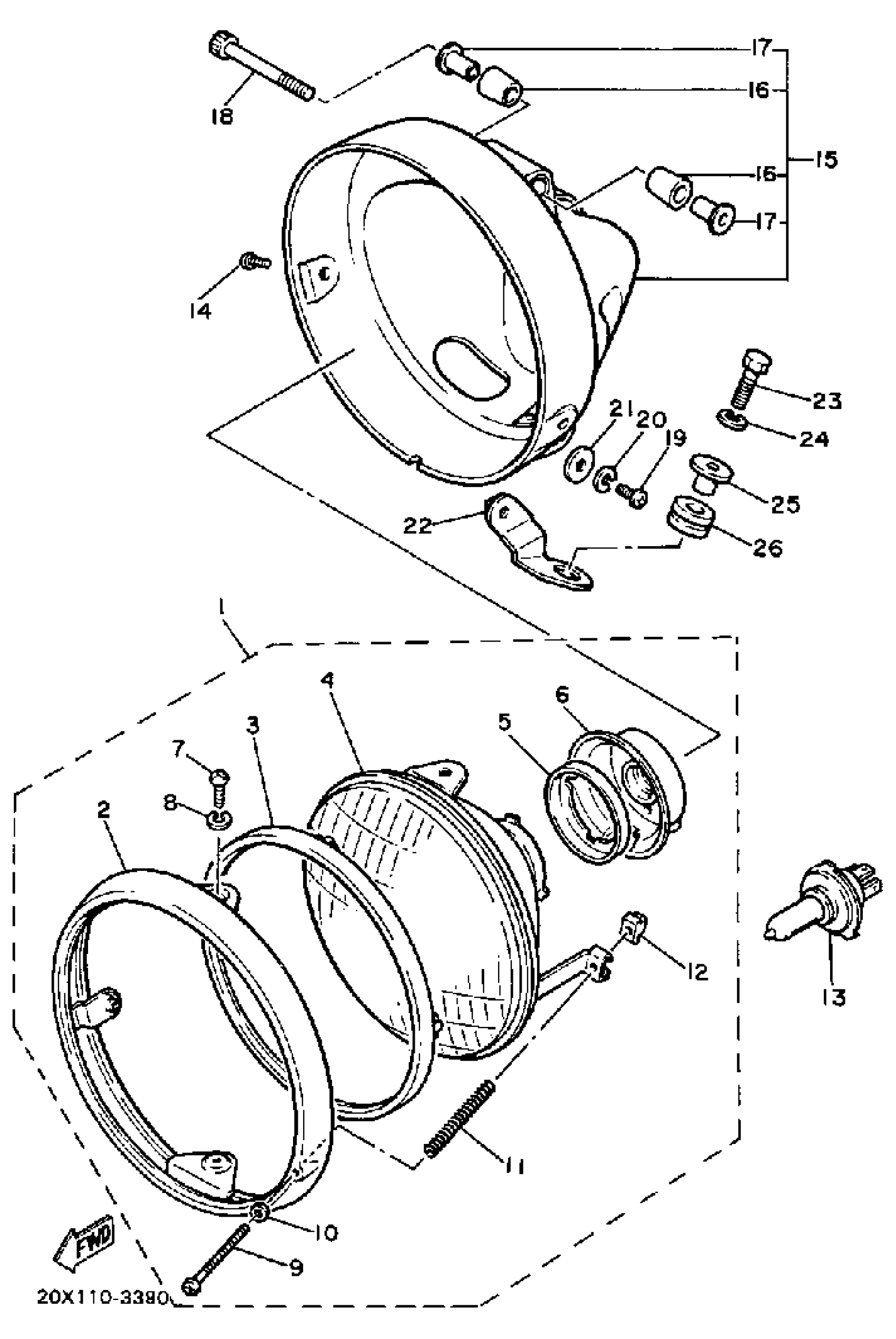 Yamaha XV750MK (MIDNIGHT VIRAGO 750) 1983 HEADLIGHT Diagram