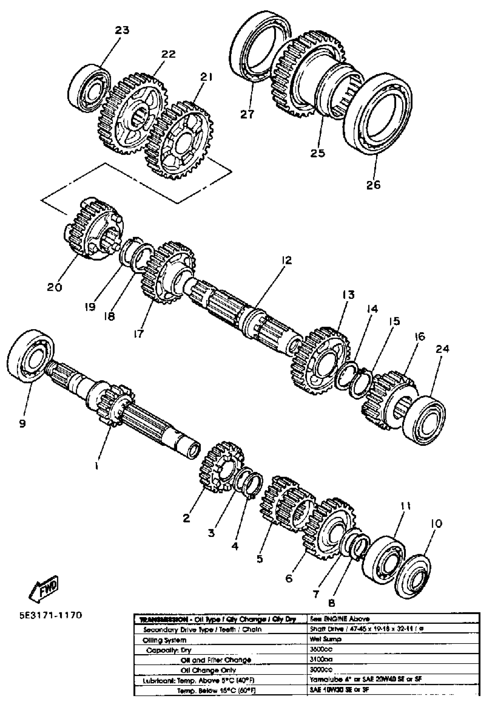 Yamaha XV750MK (MIDNIGHT VIRAGO 750) 1983 TRANSMISSION Diagram