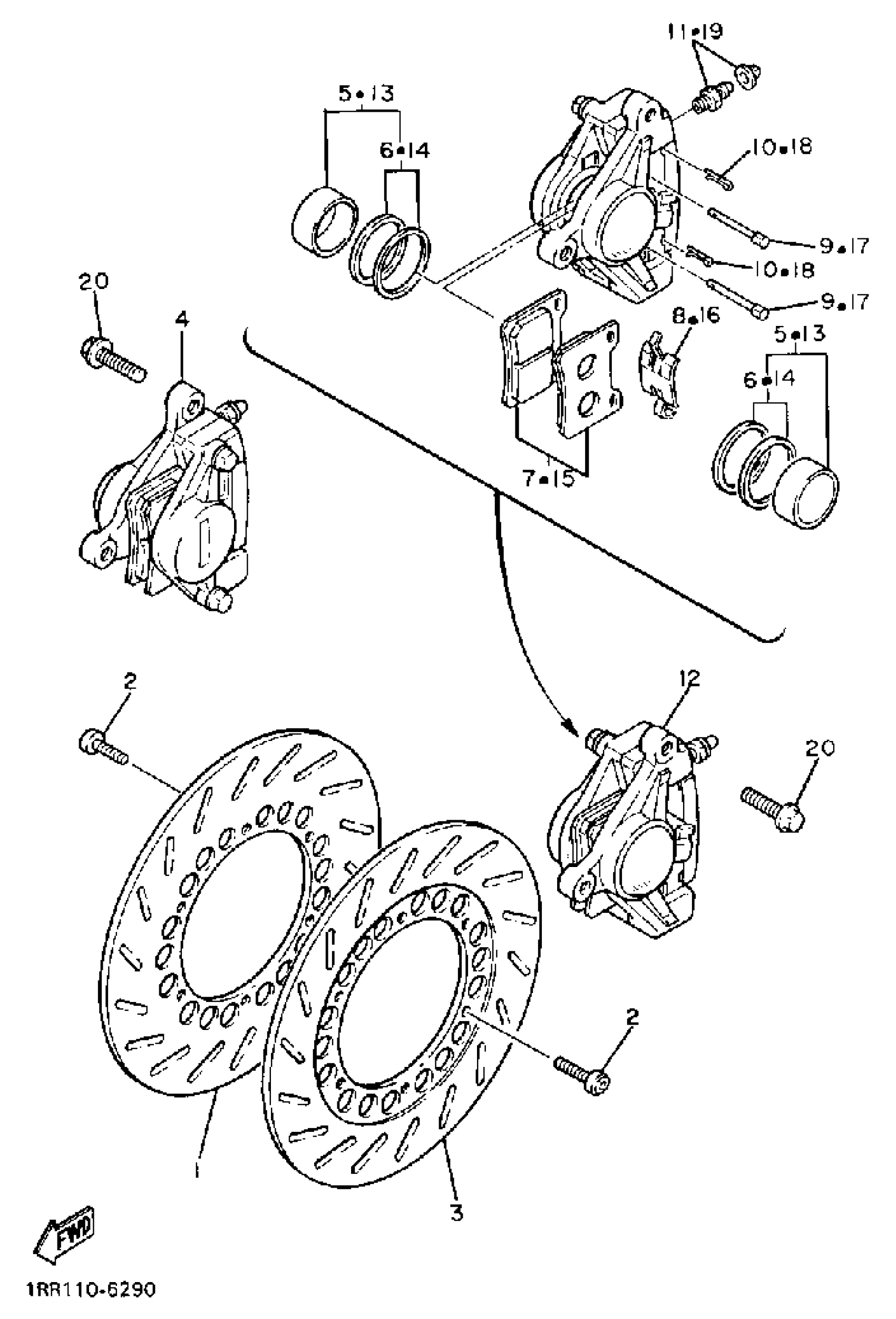 Yamaha XV750UC (VIRAGO 750 CA) 1988 FRONT BRAKE CALIPER Diagram