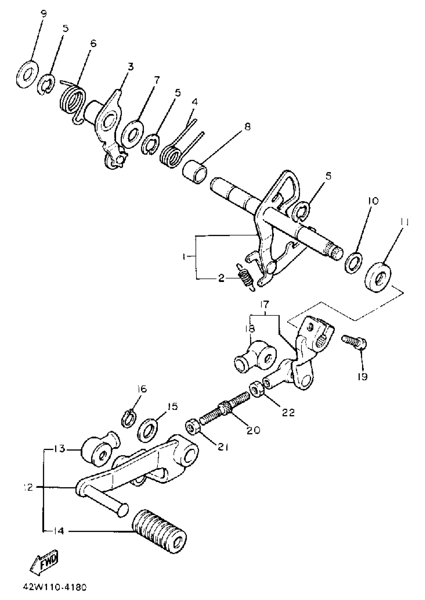 Yamaha XV750UC (VIRAGO 750 CA) 1988 SHIFT SHAFT Diagram