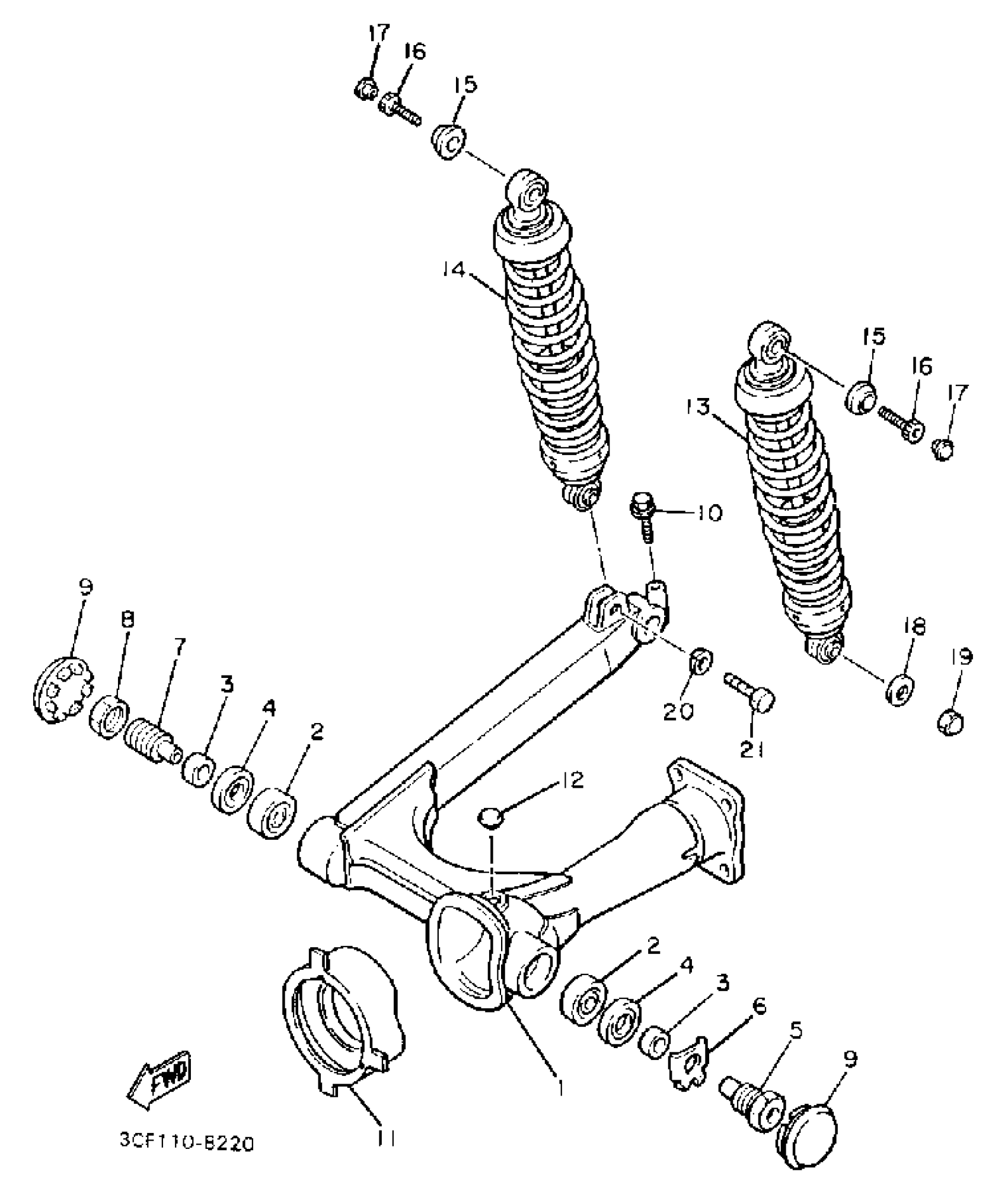 Yamaha XV750UC (VIRAGO 750 CA) 1988 SWING ARM REAR SHOCKS Diagram