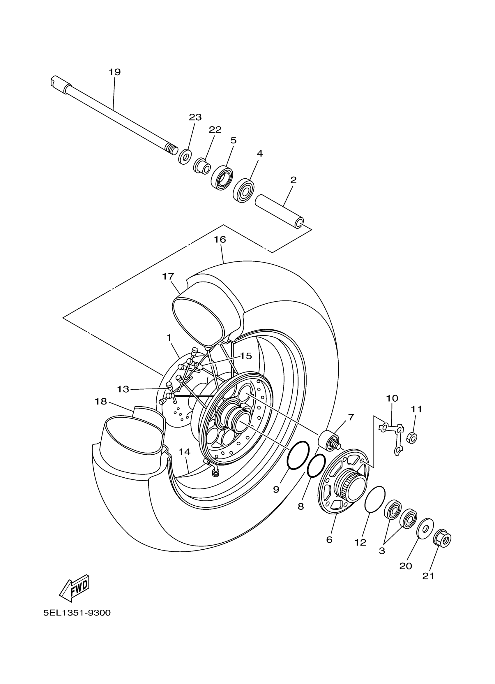 Yamaha XVS1100AMC (V-STAR 1100 CLASSIC CA) 5KS2 2000 REAR WHEEL Diagram