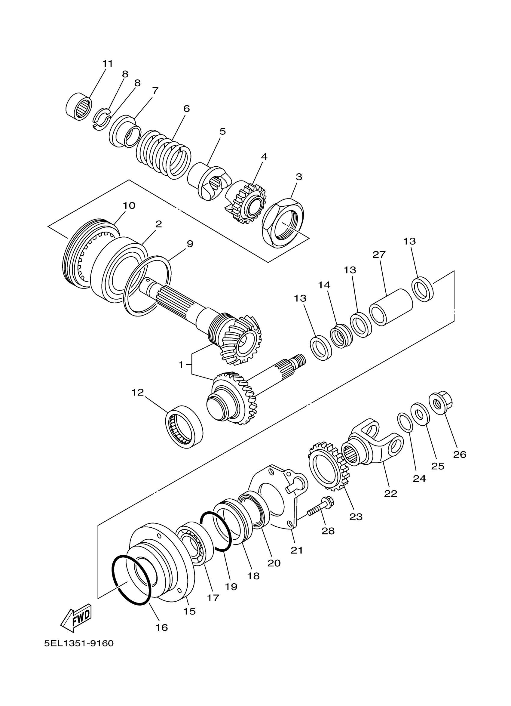 Yamaha XVS1100ANC (V-STAR 1100 CLASSIC CA) 5KS8 2001 MIDDLE DRIVE GEAR Diagram