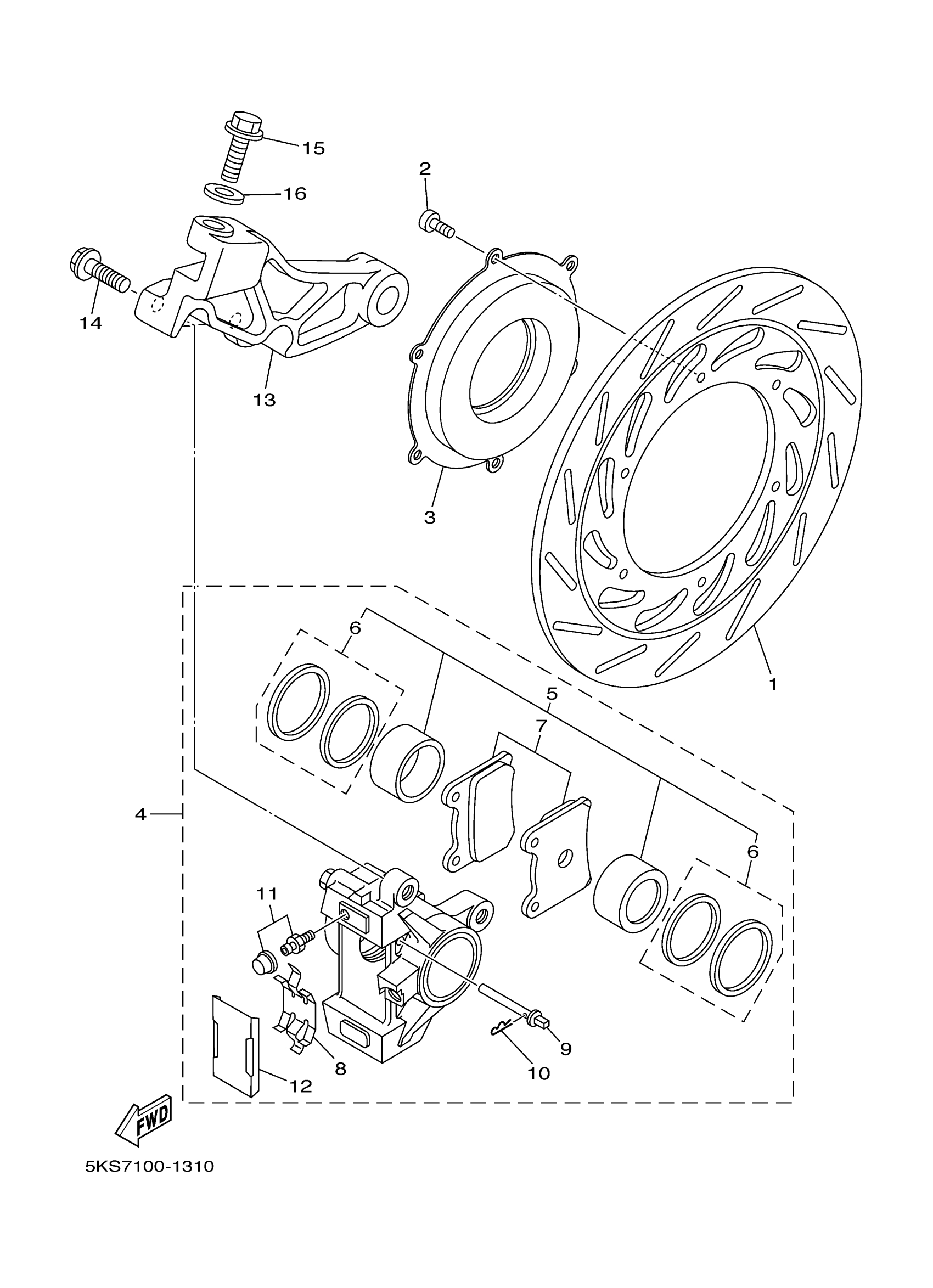 Yamaha XVS1100ANC (V-STAR 1100 CLASSIC CA) 5KS8 2001 REAR BRAKE CALIPER Diagram