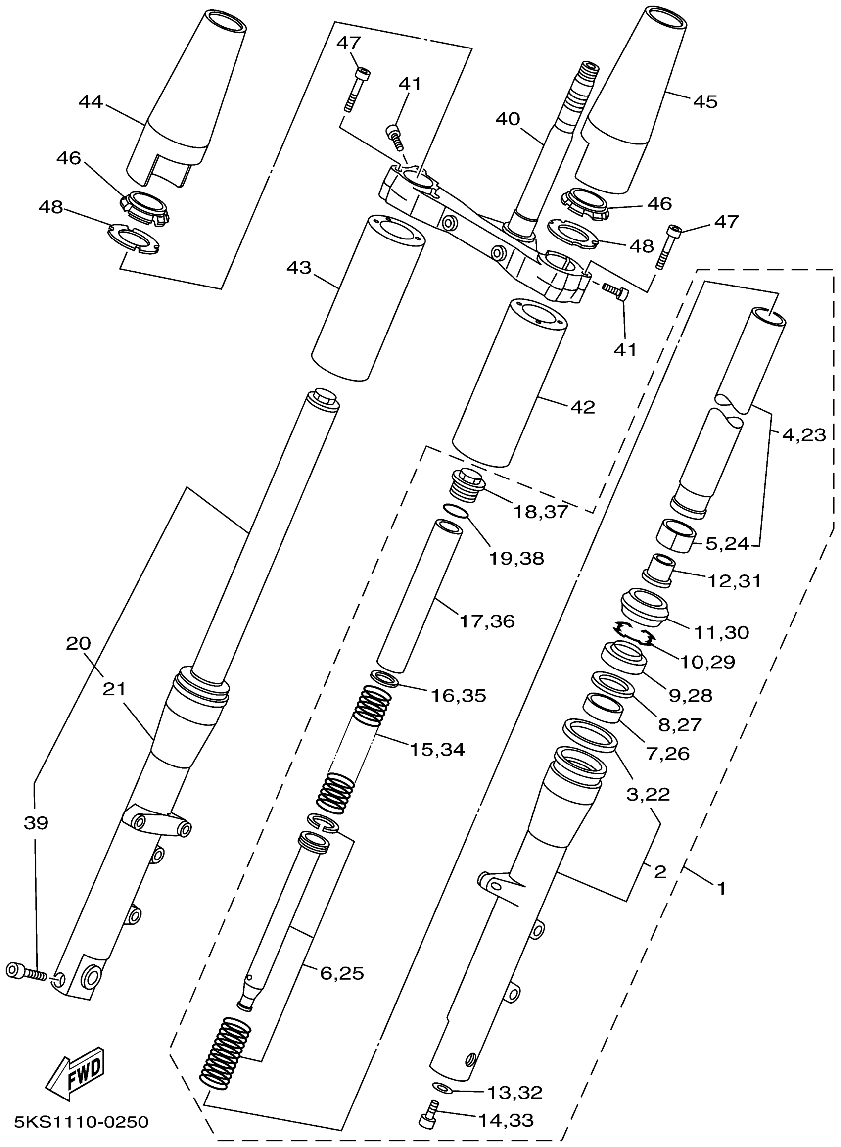 Yamaha XVS1100APC (V-STAR 1100 CLASSIC CA) 5KSD 2002 FRONT FORK Diagram