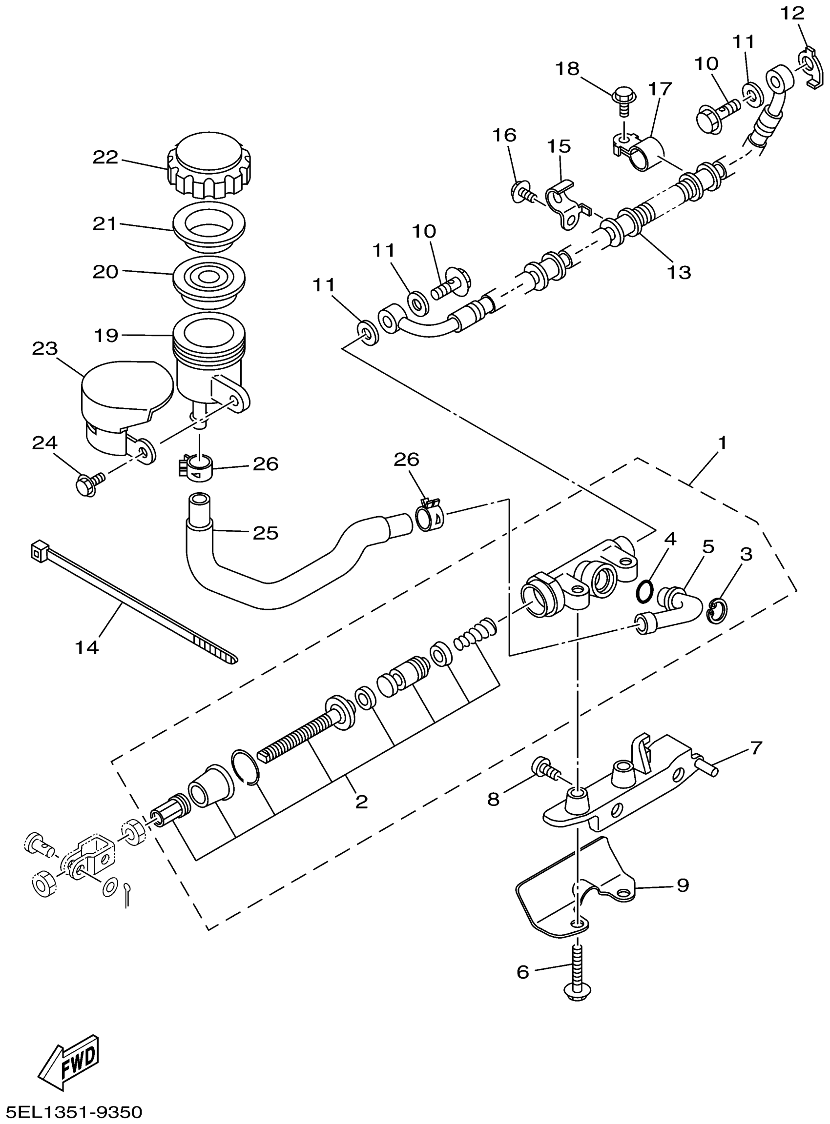 Yamaha XVS1100APC (V-STAR 1100 CLASSIC CA) 5KSD 2002 REAR MASTER CYLINDER Diagram