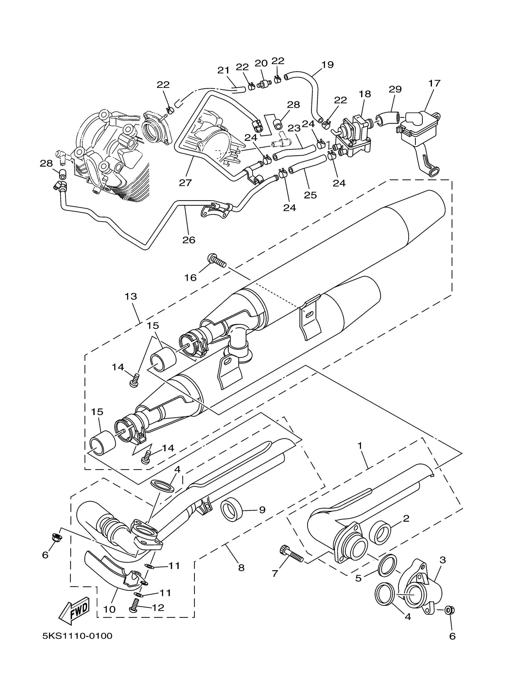 Yamaha XVS1100ARC (V-STAR 1100 CLASSIC CA) 5KSS 2003 EXHAUST Diagram