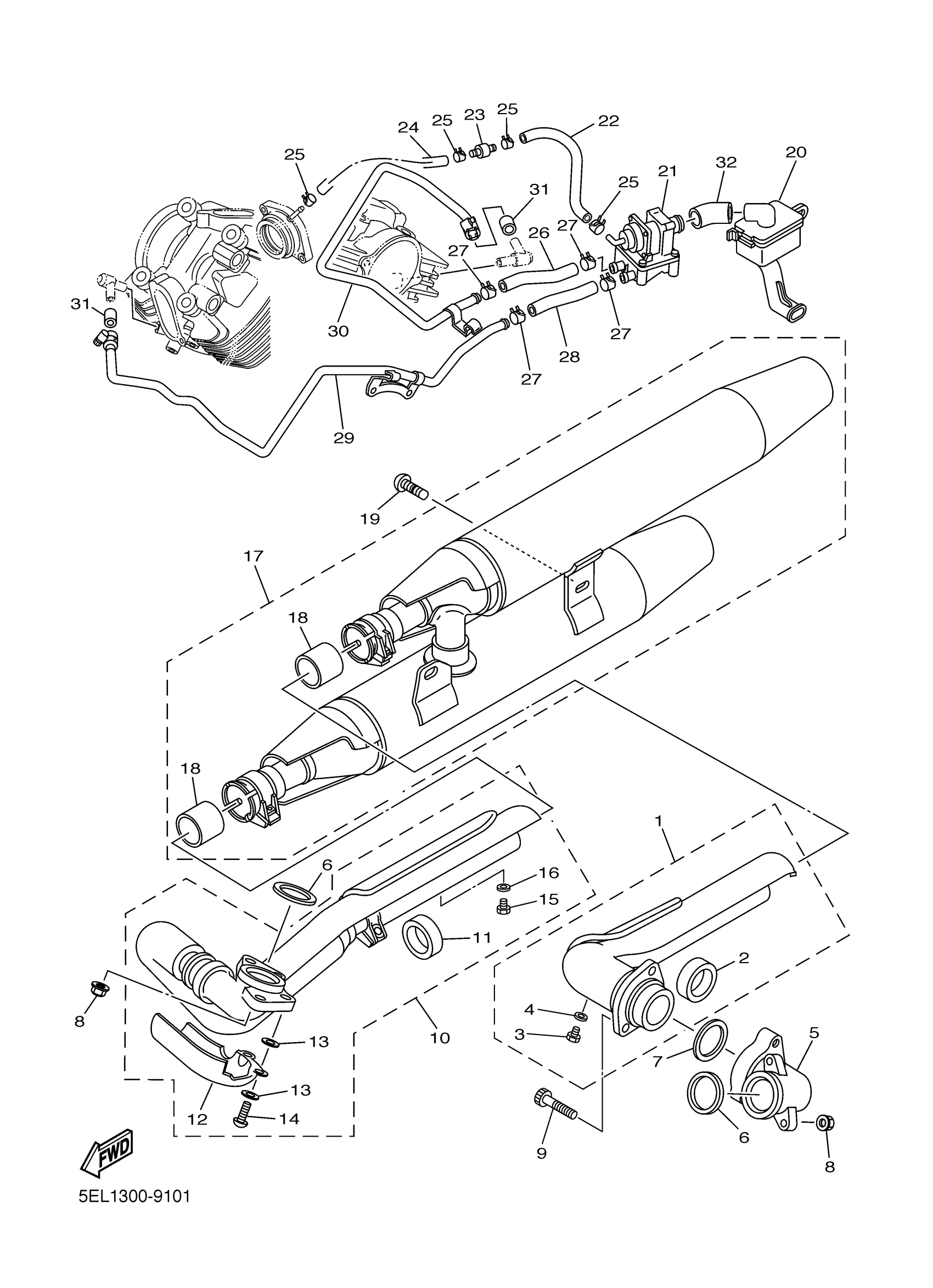 Yamaha XVS1100LC (V-STAR 1100 CA) 5EL6 1999 EXHAUST Diagram