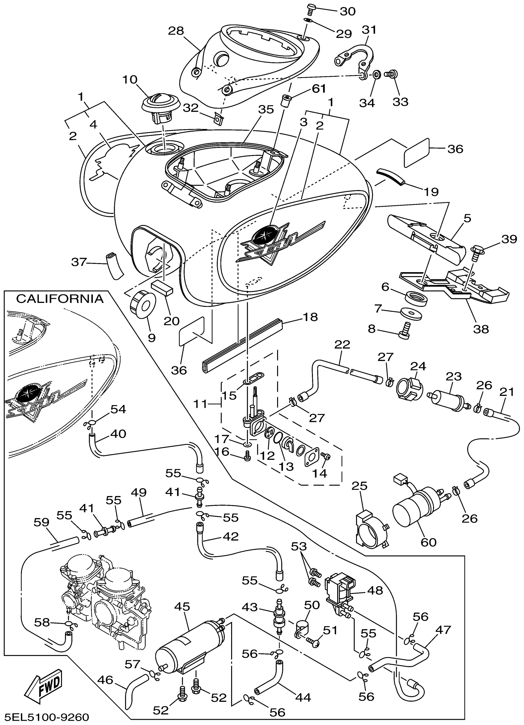 Yamaha XVS1100LC (V-STAR 1100 CA) 5EL6 1999 FUEL TANK Diagram