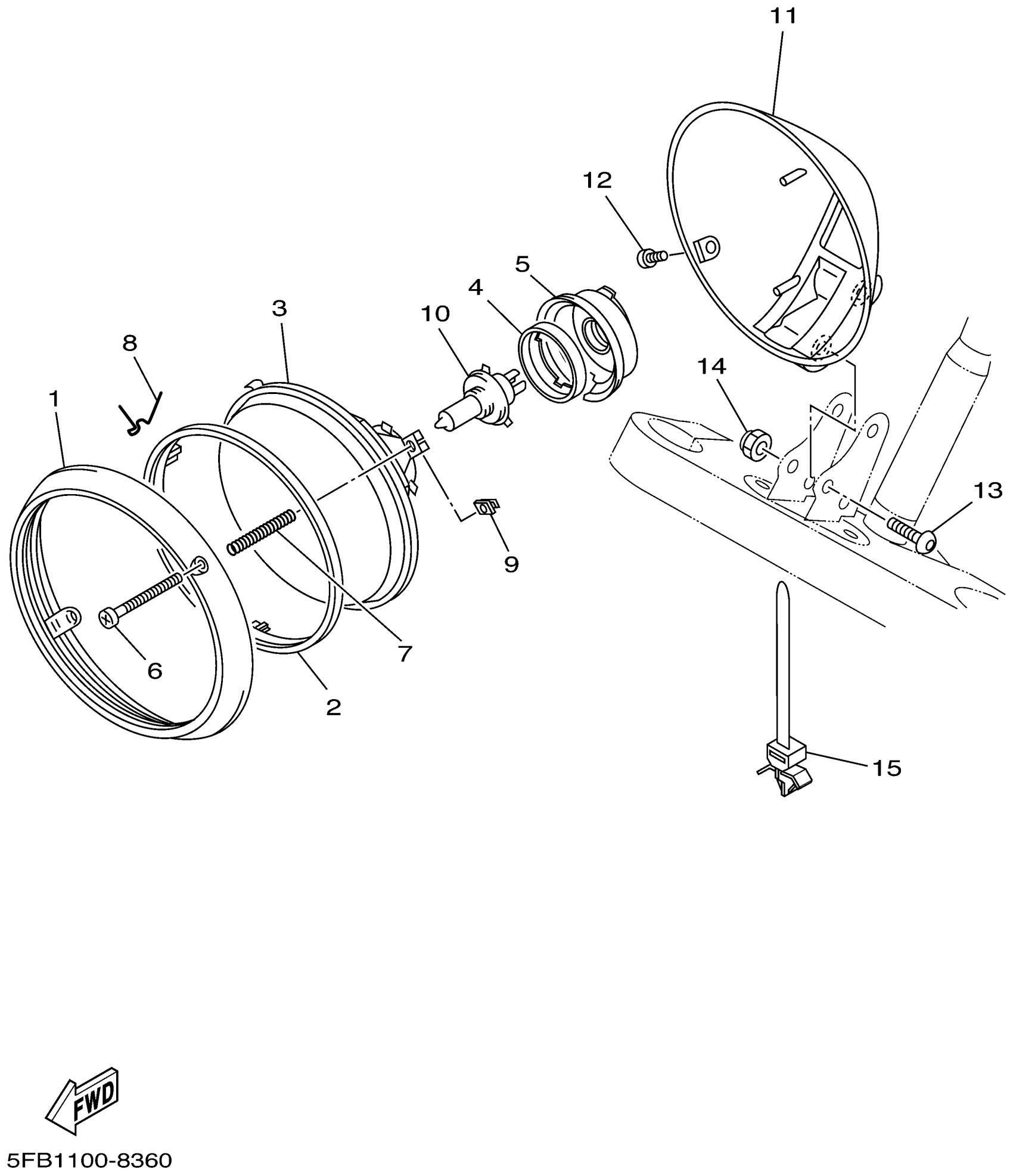 Yamaha XVS1100LC (V-STAR 1100 CA) 5EL6 1999 HEADLIGHT Diagram