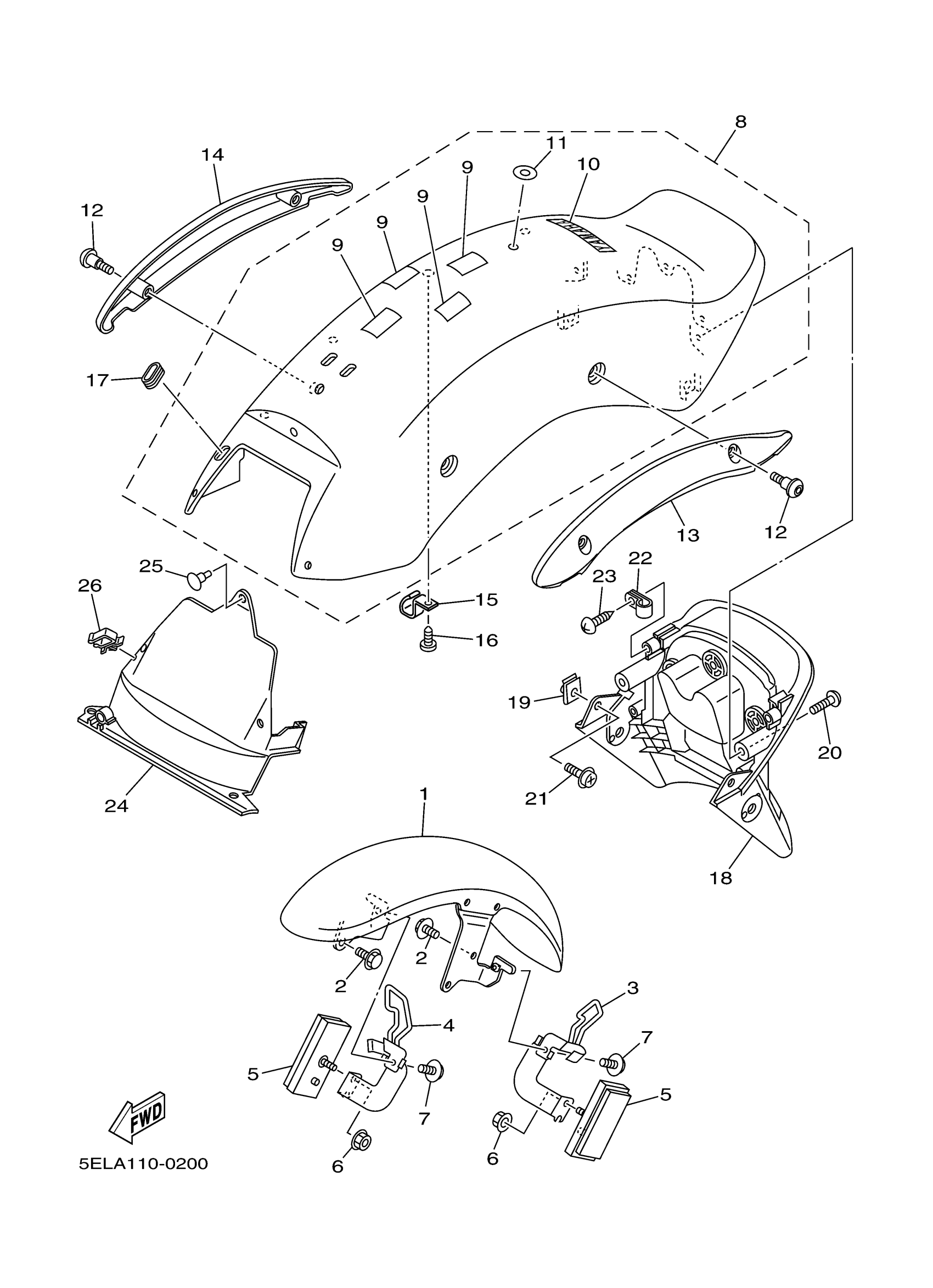 Yamaha XVS1100MC (V-STAR 1100 CUSTOM CA) 5ELB 2000 FENDER Diagram