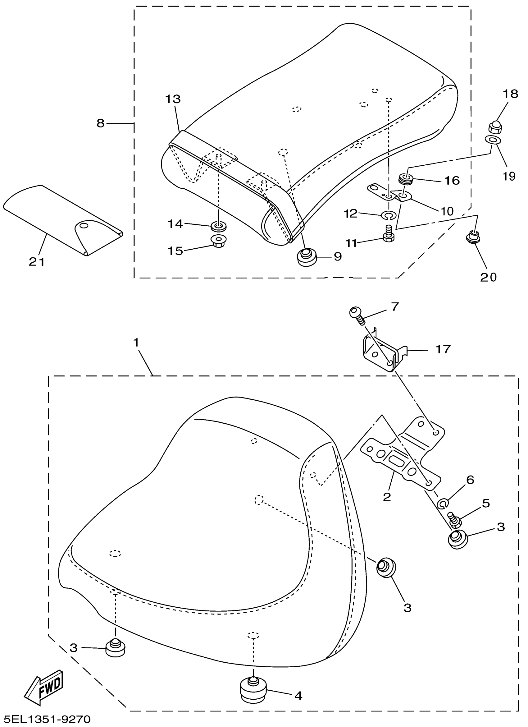 Yamaha XVS1100MC (V-STAR 1100 CUSTOM CA) 5ELB 2000 SEAT Diagram