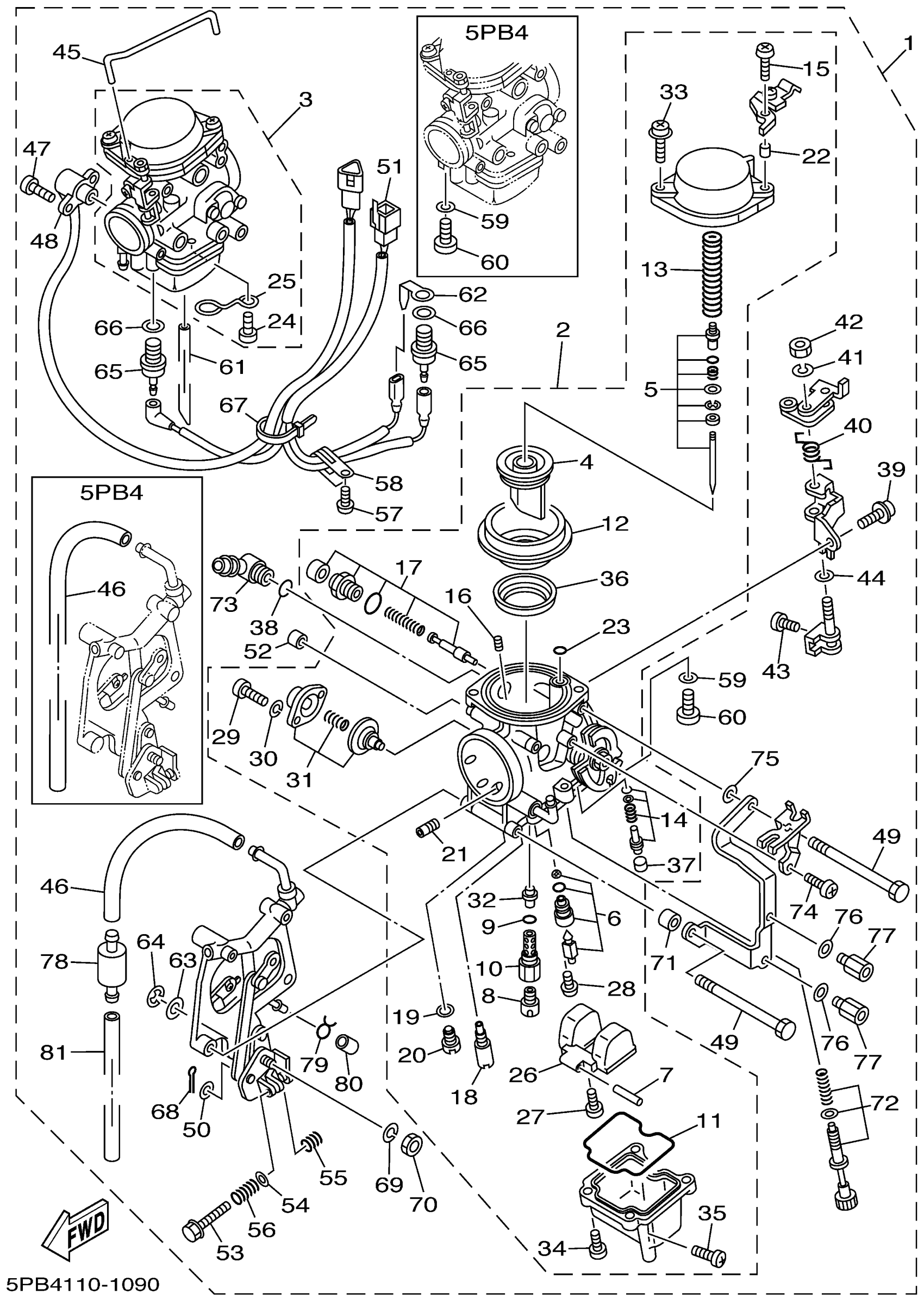 Yamaha XVS1100NC (V-STAR 1100 CUSTOM CA) 5PB5 2001 CARBURETOR Diagram