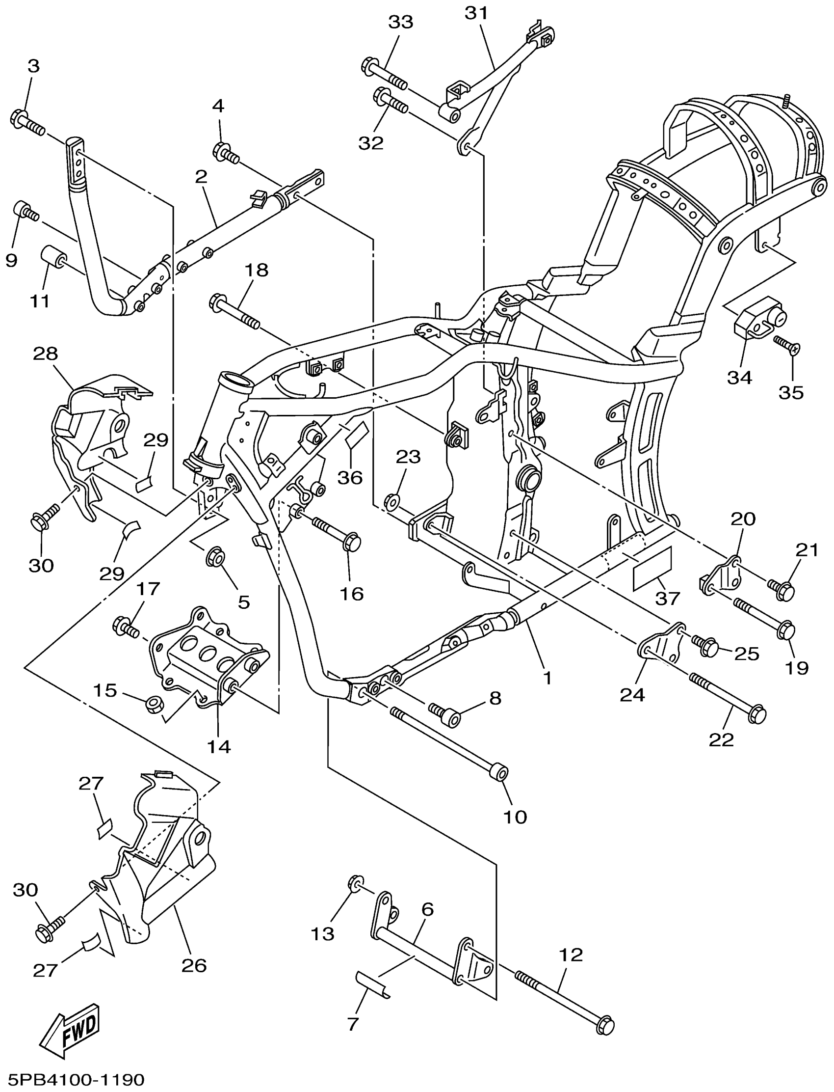 Yamaha XVS1100NC (V-STAR 1100 CUSTOM CA) 5PB5 2001 FRAME Diagram