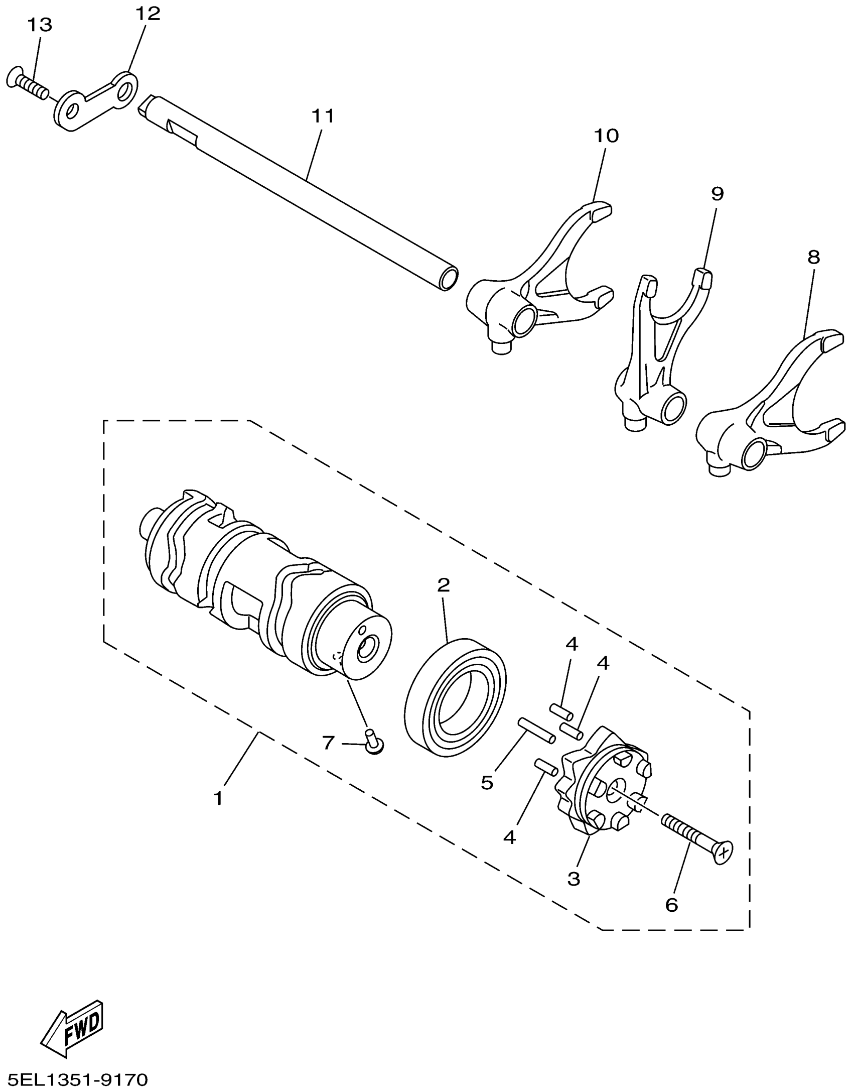Yamaha XVS1100NC (V-STAR 1100 CUSTOM CA) 5PB5 2001 SHIFT CAM FORK Diagram